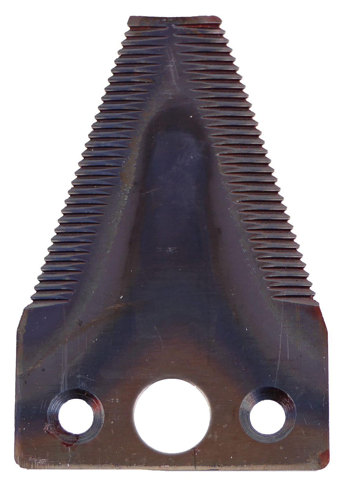 Mähmesserklinge aus österreichischer Produktion. Die Nietenbohrungen haben an der Unterseite eine Senkung.