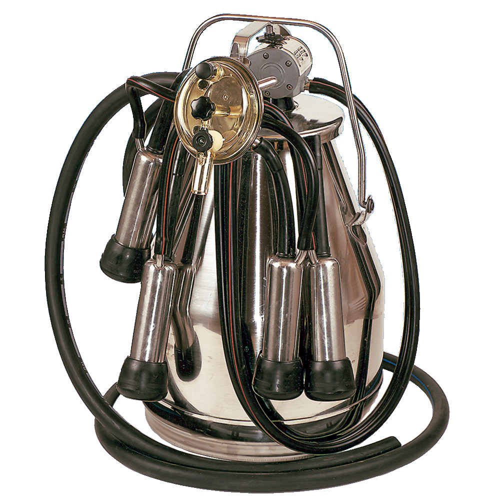 Bestehend aus: Edelstahleimer 25 Liter, Pulsator Interpuls L02 Air 60:40, Milchsammelstück Orbiter 250 ccm, Melkzeug komplett mit Zitzengummi lang passend DeLaval 1-rillig 960017-01 mit 27 mm Zitzendurchmesser. Komplett mit Milch- und Luftschläuchen. (funktioniert nur mit einer Vakuumpumpe)