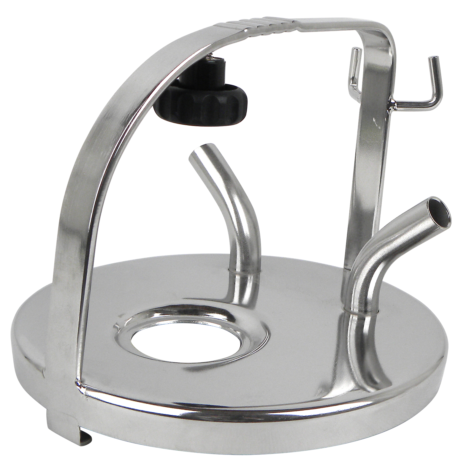Edelstahldeckel mit Bügelhöhe 142 mm, Innen-ø 200 mm, Milchschlauchanschluss 2 x 17 mm, mit Adapterbohrung
