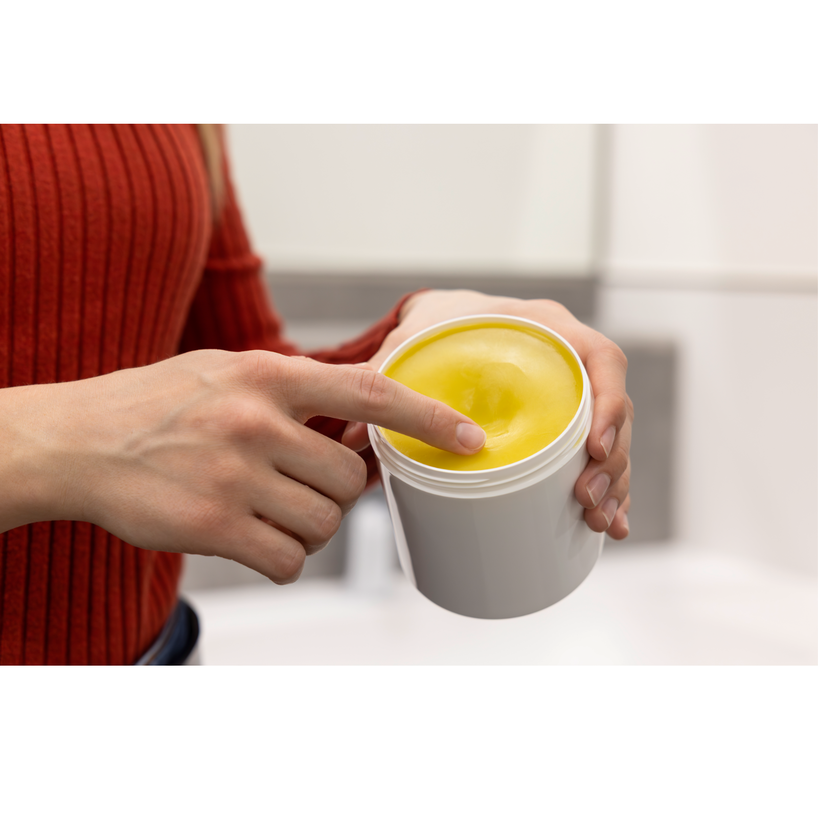 Pflegende Hautcreme für Euter und Hände – mit Ringelblume, Bienenwachs & Vitamin EDiese hochwertige Pflegecreme eignet sich hervorragend für die tägliche Anwendung an Euter und Händen.Sie unterstützt gezielt die natürliche Schutzfunktion der Haut und stärkt deren Barriere – besonders bei stark beanspruchten Hautpartien.Die Formulierung enthält bewährten Ringelblumenextrakt, pflegendes Bienenwachs und schützendes Vitamin E.Gemeinsam sorgen diese Wirkstoffe für eine beruhigende, feuchtigkeitsspendende und regenerierende Pflege.Ringelblume ist bekannt für ihre vielseitigen positiven Eigenschaften in der Hautpflege und wird bei empfindlicher oder trockener Haut besonders geschätzt.Die Grundlage aus reiner Vaseline in Arzneibuchqualität sorgt für eine langanhaltende Pflegewirkung und schützt die Haut zuverlässig vor äußeren Einflüssen.Inhalt: 500 mlProduktvorteile: