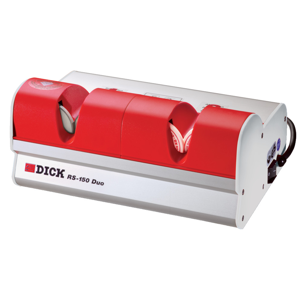Sie ermöglicht ein professionelles Nachschleifen und sorgt für einen präzisen Schliff und das richtige Schneidenprofil. Besonders geeignet für Gastronomie, Verkaufstheken und Großküchen.Die Maschine verfügt über gegenläufige Diamantschleif- und Keramikabziehscheiben, die Ihre Messer lange scharf halten. Ob Handmesser, Spalter oder Maschinenmesser – die DICK Schärfmaschine bietet für jeden Verwendungszweck das passende Schleifgerät.Die widerstandsfähige Diamantschleifscheibe garantiert eine lange Lebensdauer.Technische Details:
