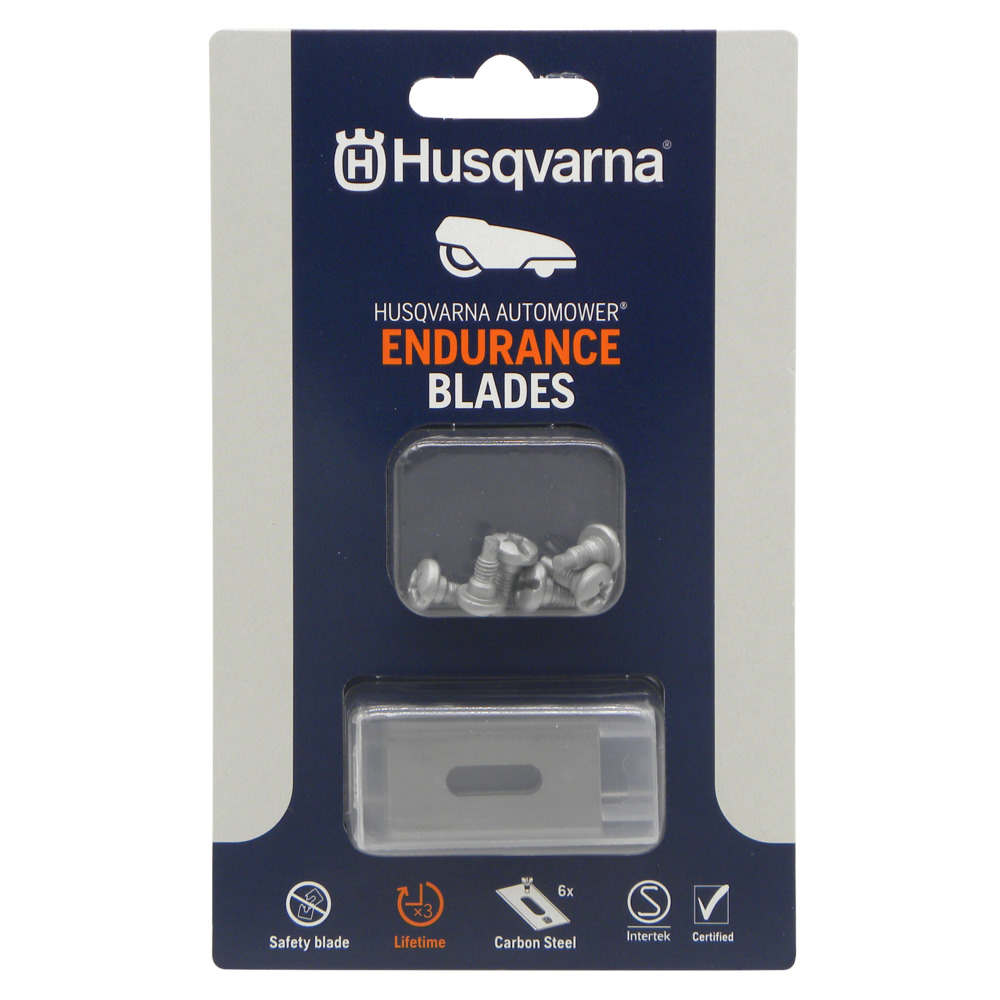 Dank der neuen Konstruktion bieten Husqvarna Automower® Endurance Klingen im Vergleich zu unseren ursprünglichen Klingen mehr als die doppelte Lebensdauer. Das Design ermöglicht eine härtere und schärfere Kante ohne Einbußen bei den Sicherheitsstandards und bietet an allen vier Seiten Schneidkanten.
