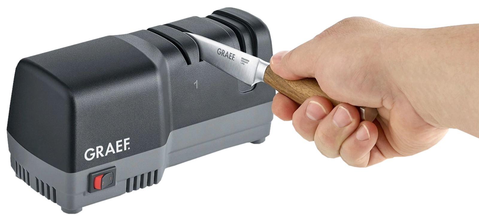 Sicher und effizient: Kein Verletzungsrisiko, keine Kraftanstrengung – in wenigen Zügen ist Ihr Messer wieder einsatzbereit.