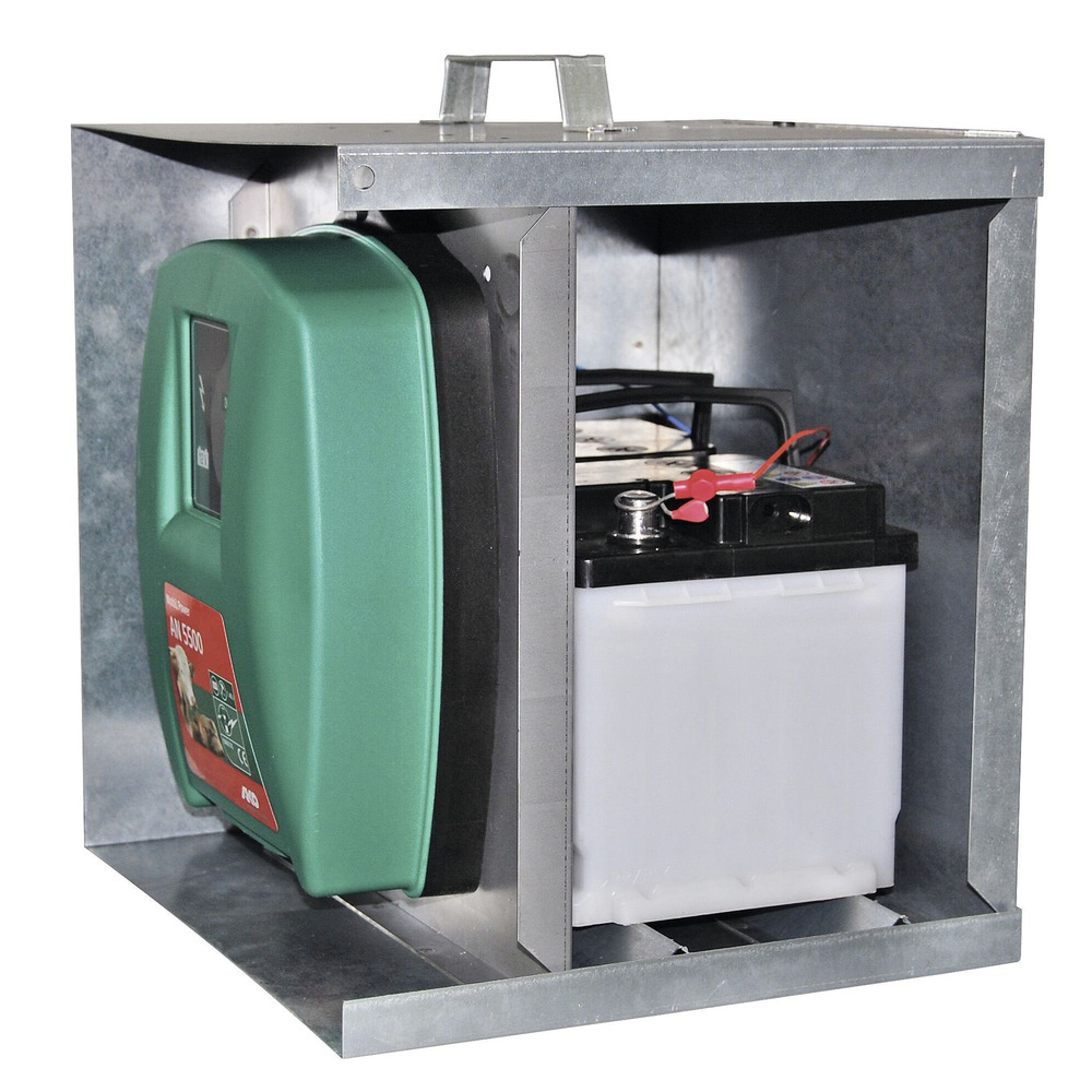 Metallkasten für Batterie- oder Akku-Weidezaungeräte, bietet Platz für Akkus bis 130 Ah, schützt Gerät und Akku vor Wind und Wetter. Auch für die Anwendung mit Solarmodulen ideal.Außenmaße (B x T x H): 37,5 x 33,5 x 37,5 cm