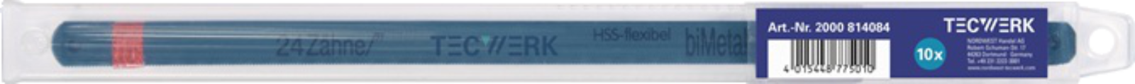 10 Stück HSS Bi-Metall Eisensägeblatt mit 24 Zähne / Zoll, hoher Schnittgeschwindigkeit und langer Standzeit,einseitig gezahnt, Zähne aus HSS (DIN 1.3343), Härte 63 - 65 HRC,gefräst und gewelltBlattkörper aus Federstahl (50 HRC)