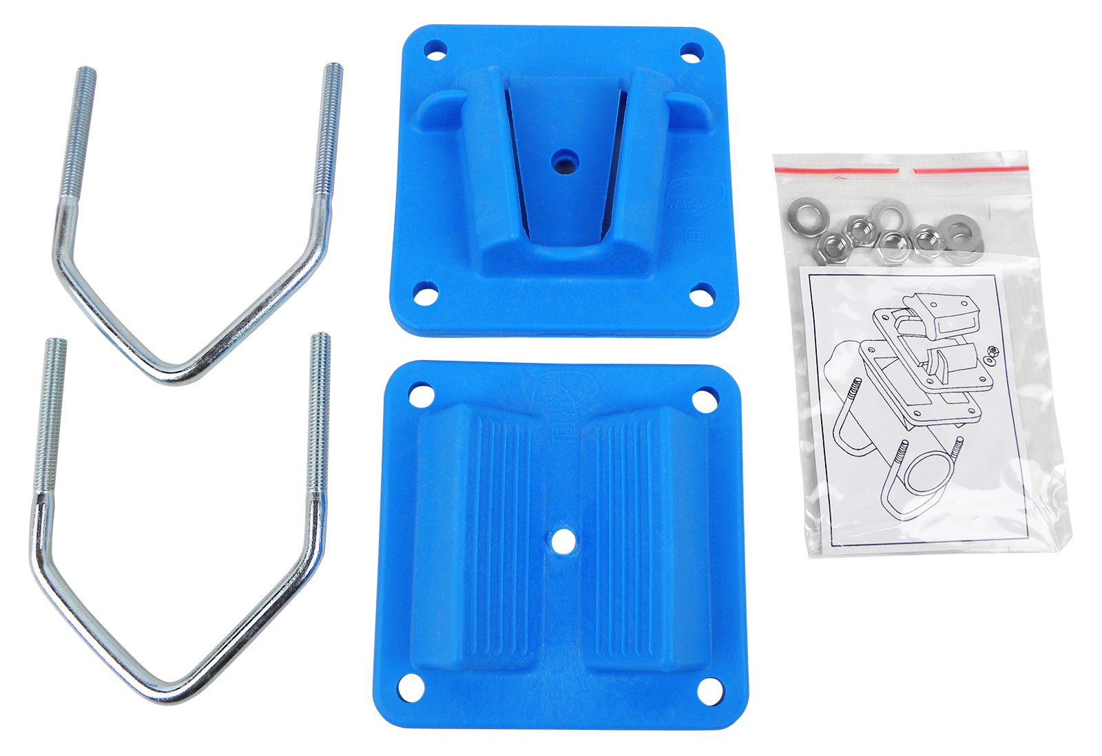 Bestehend aus 2 Befestigungsplatten PVC und 2 Befestigungsbügel. Für Rohre bis 2″.