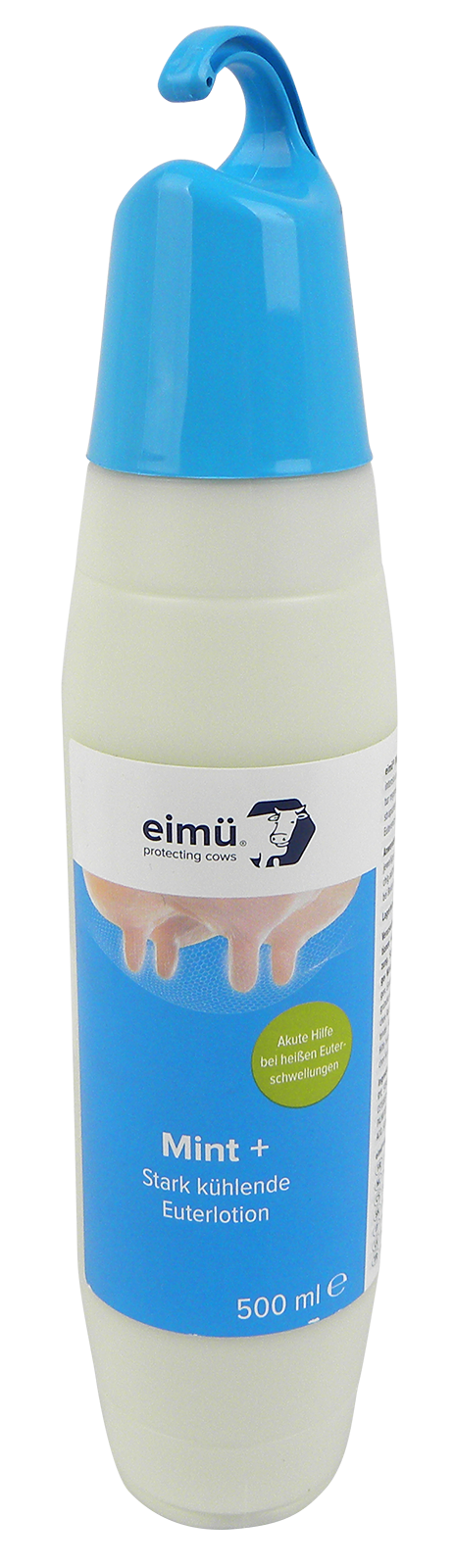 Die Euterpflegelotion eimü Mint Plus ist speziell für stark beanspruchte Euter entwickelt worden. Ihre tiefenwirksame Rezeptur unterstützt die Therapiebegleitung und fördert die Regeneration. Das reine japanische Pfefferminzöl in der Lotion hat anerkannte bakterizide und pharmakologische Eigenschaften. Die stark kühlende Wirkung wurde thermografisch bestätigt und trägt zur Gesundhaltung von Zitzen und Euter bei, was sich positiv auf die Milchproduktion auswirken kann.