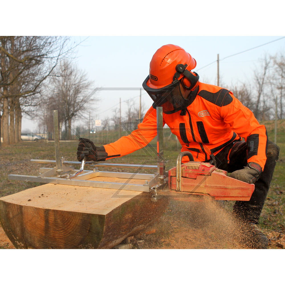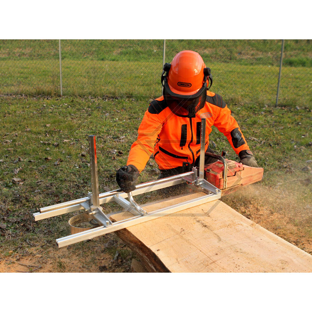 Ideal zum Schneiden von Holzbrettern in verschiedenen Größen. Perfekt für Bauherren, Schreiner und Bastler. Einfaches Handling, geringes Gewicht und leichter Aufbau ermöglichen den Transport des Sägewerks direkt zum Einsatzort (Wald, Baustelle etc.). Das Werkzeug wird direkt mit der Kettensäge verbunden und dank der zwei parallelen Schienen ist es möglich, das Werkzeug auf den Stamm zu schieben und schnell Bretter und Pfosten zu produzieren. Höhe und Breite der Schnitte sind einfach einstellbar. (Lieferung ohne Motorsäge)