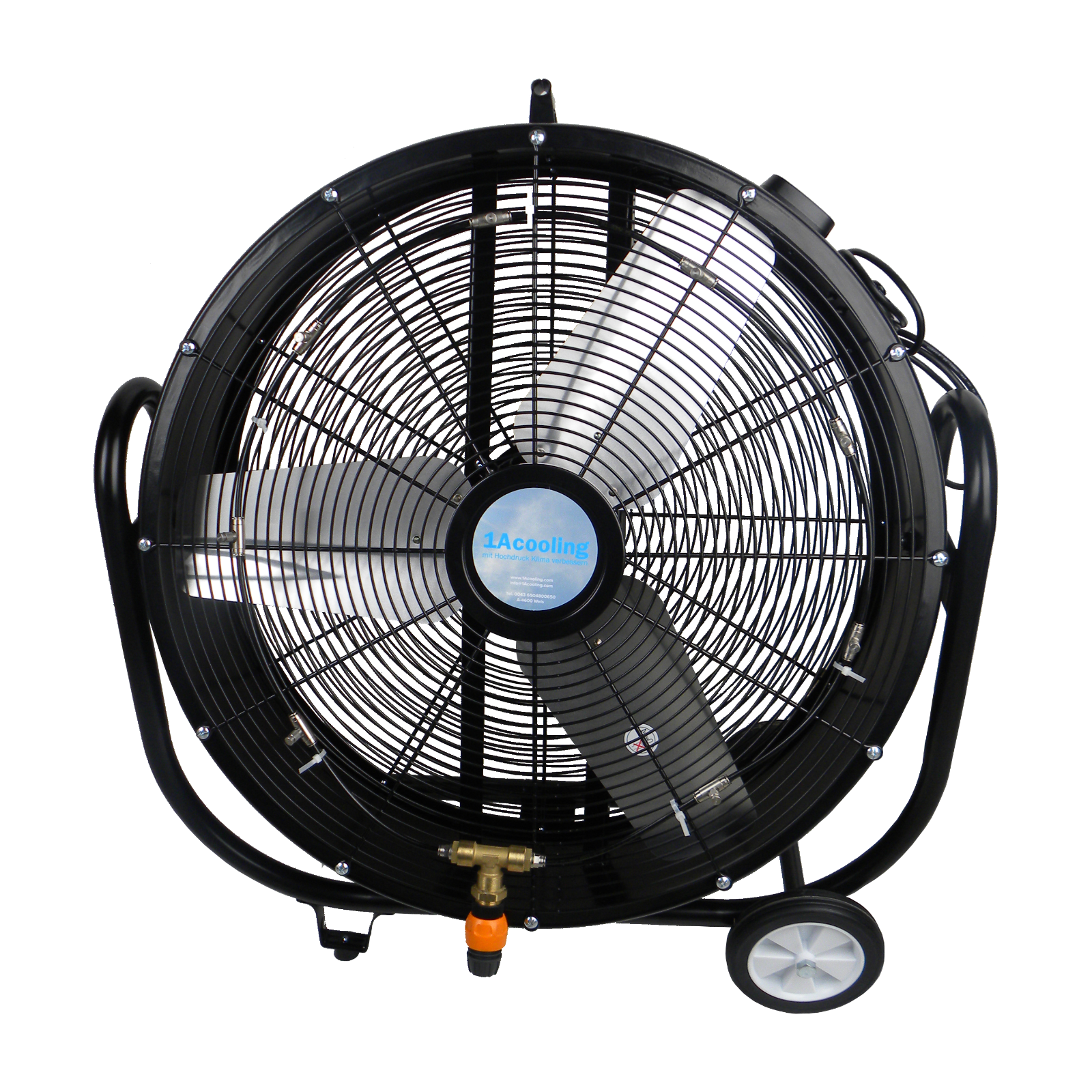 Durch das integrierte Fahrgestell ist dieser schwenkbare Ventilator mit integriertem 3-stufigem Regler ideal für den mobilen Einsatz in der Landwirtschat oder Industrie geeignet. Der Lüfter mit einem Rotordurchmesser von 80 cm bringt eine maximale Luftleistung von 15.8000 m³/h bei 930 U/min. Lautstärke 56 dB(A). 230 Volt, 50 Hz, Schutzklasse IP54, 320 Watt. Abmessung 90x98x37 cm (BxHxT).