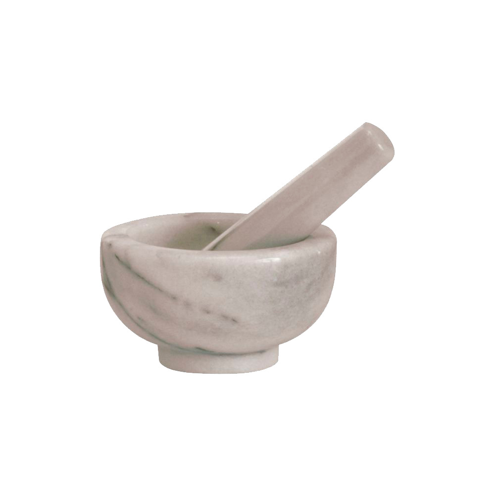 Der Mörser aus Marmor ist ein elegantes und funktionales Küchenutensil, das sich ideal zum Zerkleinern von Kräutern und Gewürzen eignet.Jeder Marmormörser ist ein Unikat, da die natürliche Maserung des Marmors jedes Modell einzigartig macht. Die glänzende Oberfläche verleiht ihm eine edle Optik und macht ihn zu einem Hingucker in der Küche.Anders als bei anderen Materialien wie Porzellan oder Stein nutzt sich der Marmormörser nicht ab. Du kannst ihn bedenkenlos verwenden, ohne dass sich Partikel lösen und deine Speisen verunreinigen . Marmor ist leicht zu reinigen. Nach der Verwendung einfach mit Wasser abspülen und trocknen – fertig!Höhe: 60mm und Ø 110mm.