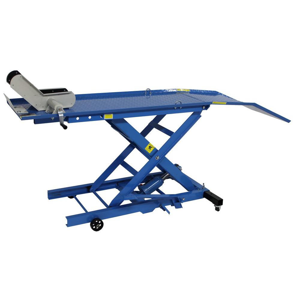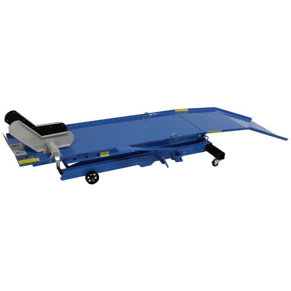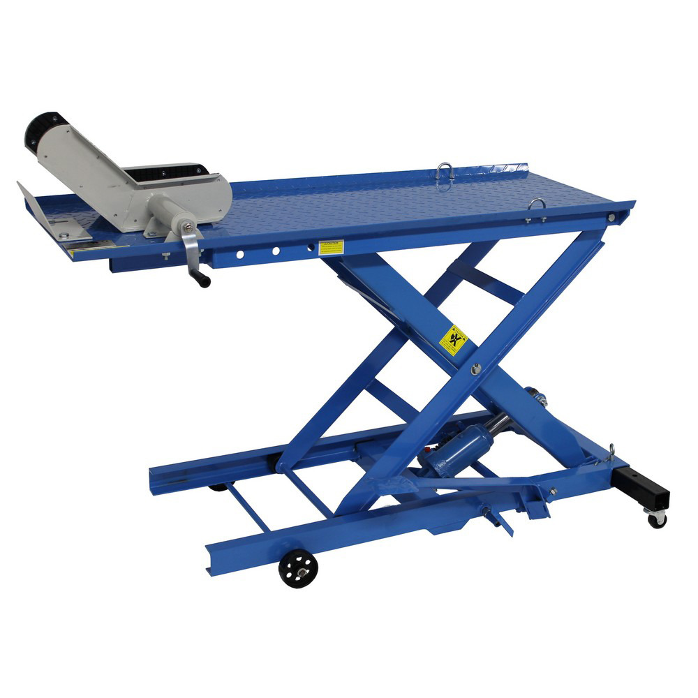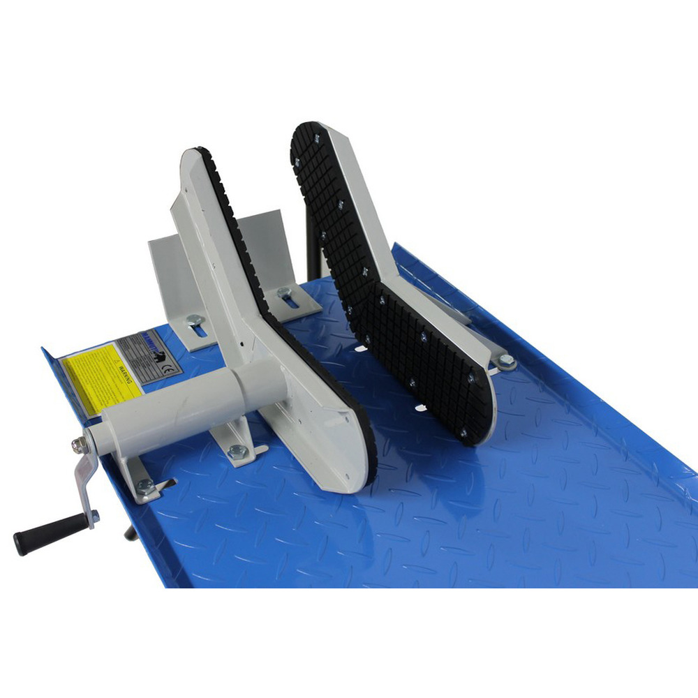 Preiswerte Hebebühne mit max. 360 kg Hubkraft. Hydraulische Fußpumpe für raschen Hub bis max. 780 mm Höhe. Plattformgröße 2200x480 mm, Mindesthöhe 220 mm. Komplett mit Klemmvorrichtung und Fahrwerk. Eigengewicht ca. 100 kg. Ideal für den anspruchsvollen Hobbyschrauber.