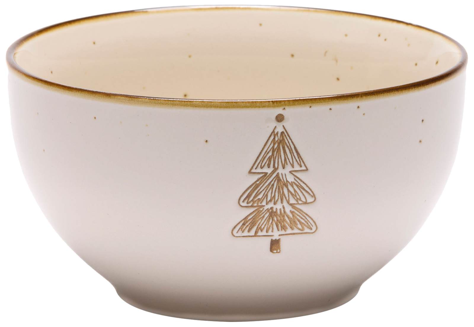 Mit der Müslischale „Baum“ aus Steingut starten Sie stilvoll in den Tag.Ob Müsli, Joghurt oder Suppe – mit 575 ml Fassungsvermögen bietet die Schale ausreichend Platz für Ihre Lieblingsspeisen. Die drei winterlichen Motive sorgen für festliche Stimmung am Frühstückstisch und sind auch ein schönes Mitbringsel in der Adventszeit.