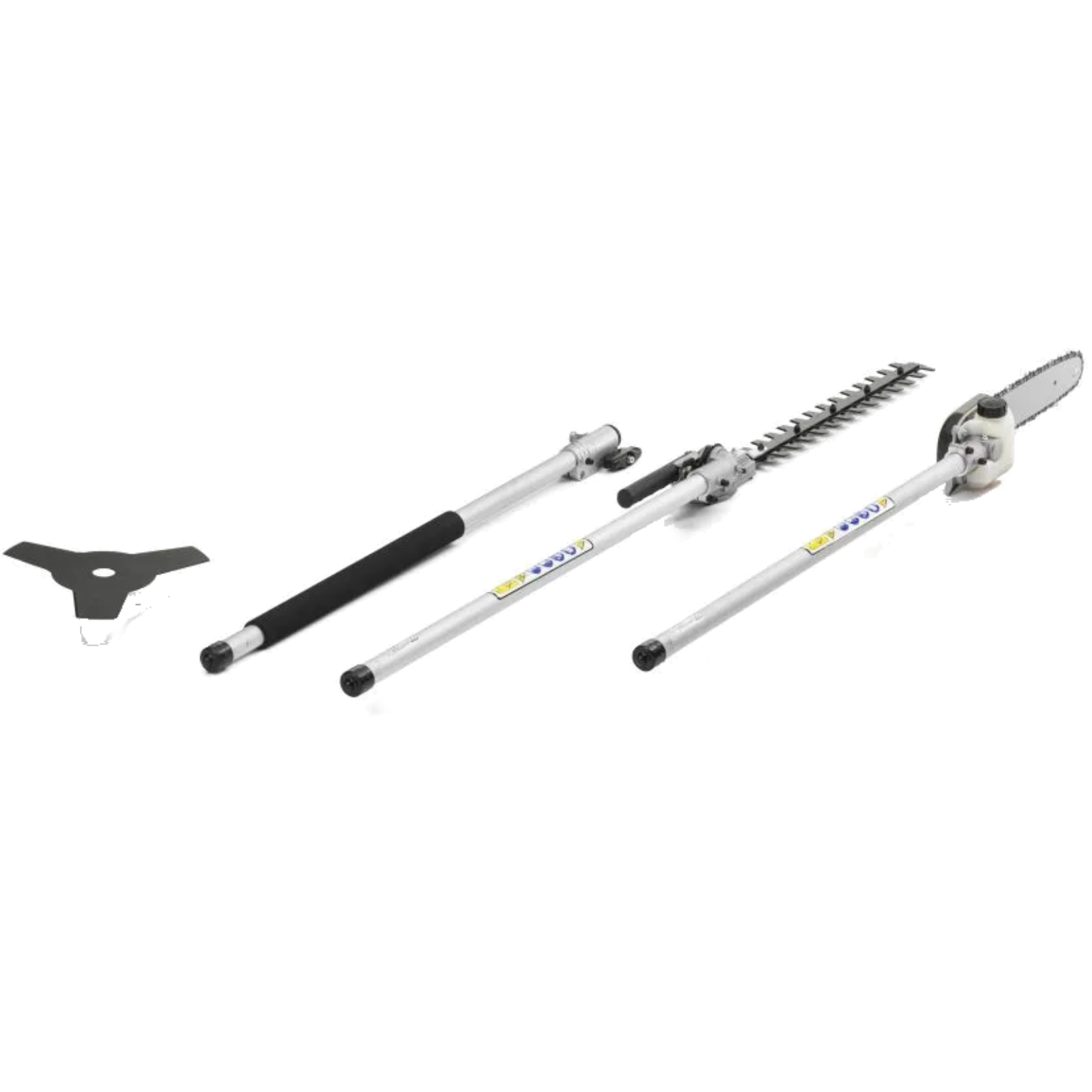 Funktionen: Rasentrimmer, Motorsense, Heckenschere und Hochentaster
