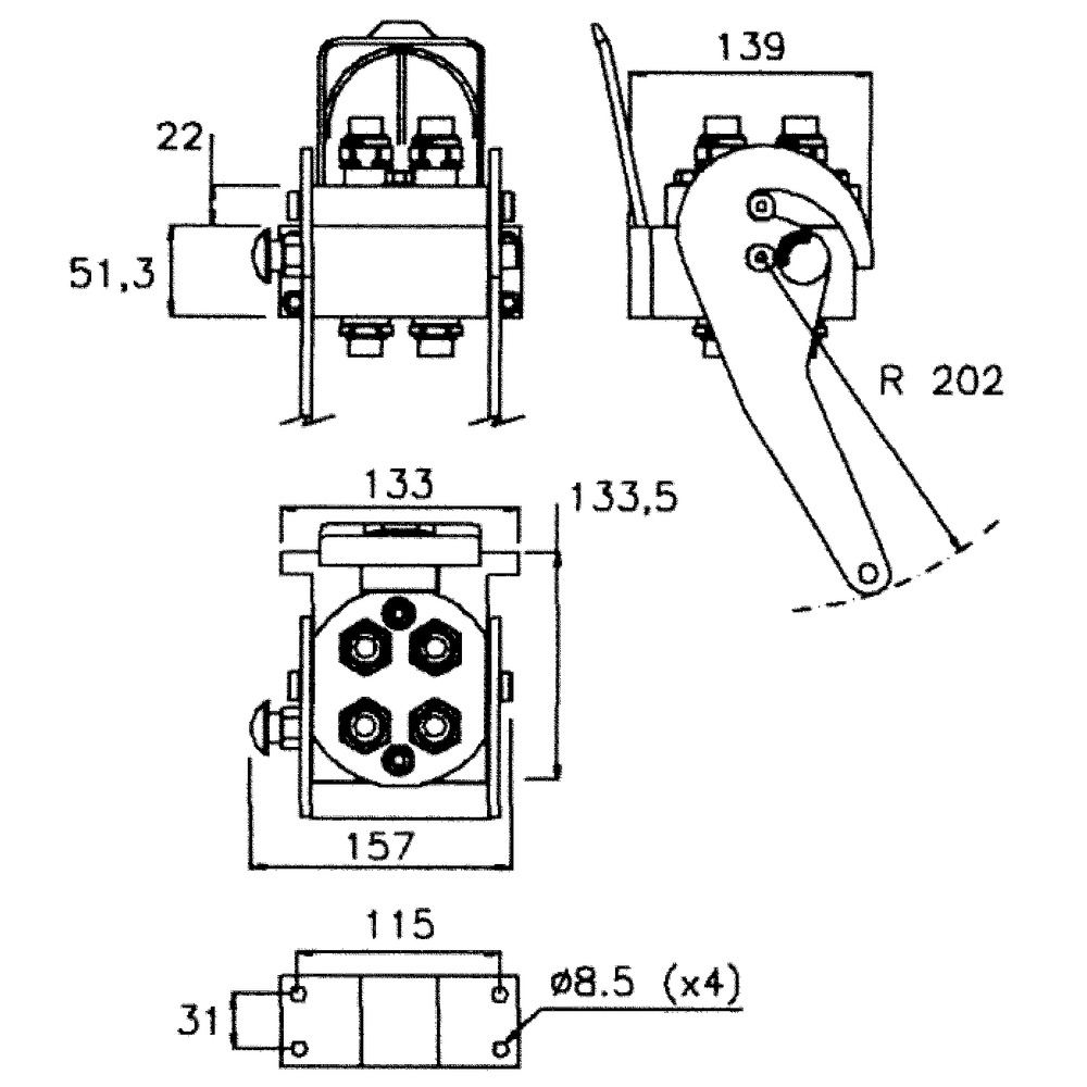 Mit 4 Hydraulikanschlüssen, Durchfluss max. 40 l/min, max. Druck 250 bar,Hydraulikanschluss M22x1,5 AG 15L