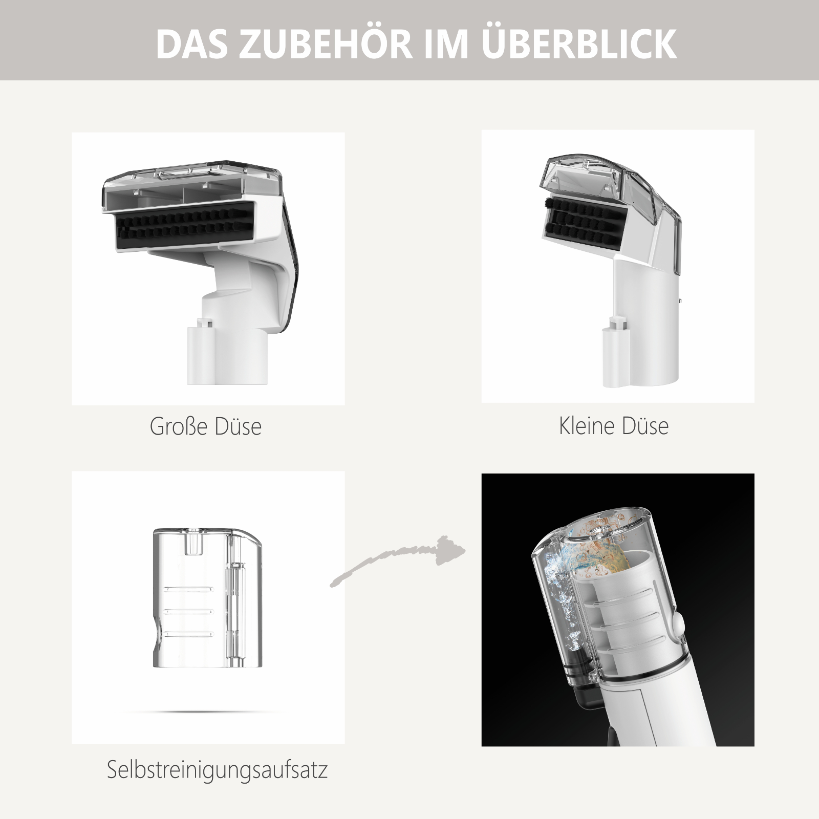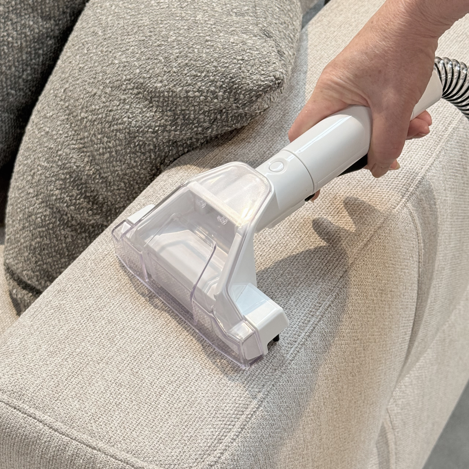 Der SpotCleaner-Aufsatz erlaubt punktgenaues Arbeiten: Reinigungslösung wird direkt auf den Fleck gesprüht, tief in die Fasern eingebracht und sofort wieder abgesaugt. Das sorgt für hygienische Sauberkeit und verhindert das Wiederdurchdringen alter Verschmutzungen.