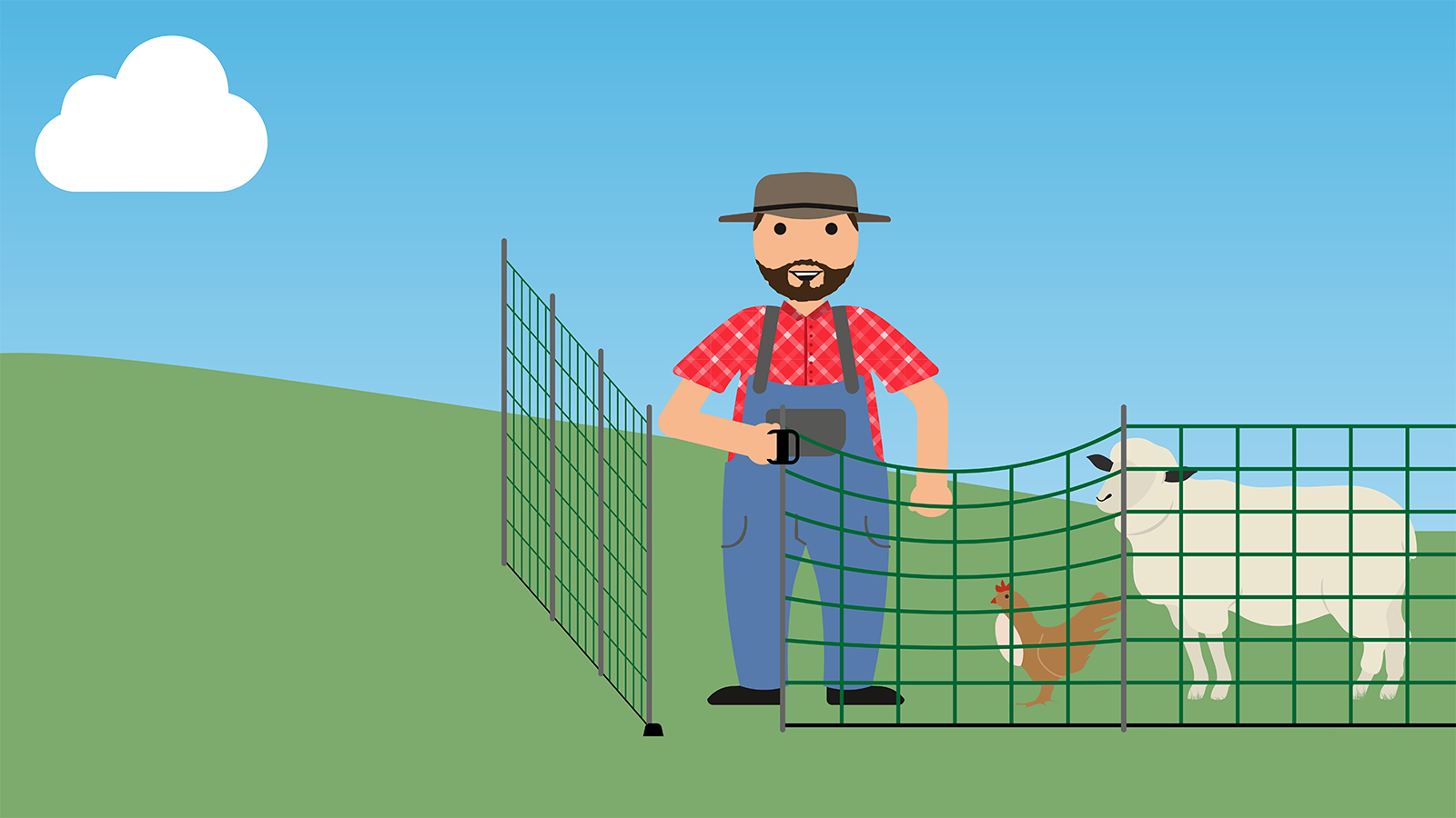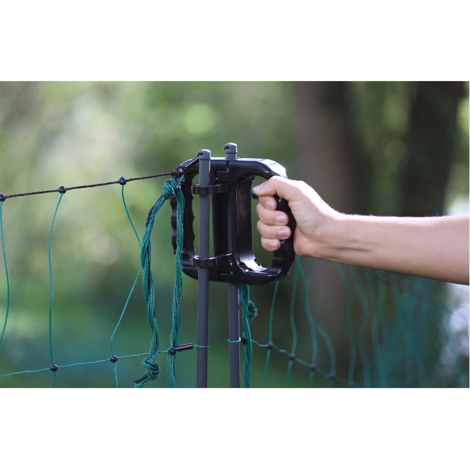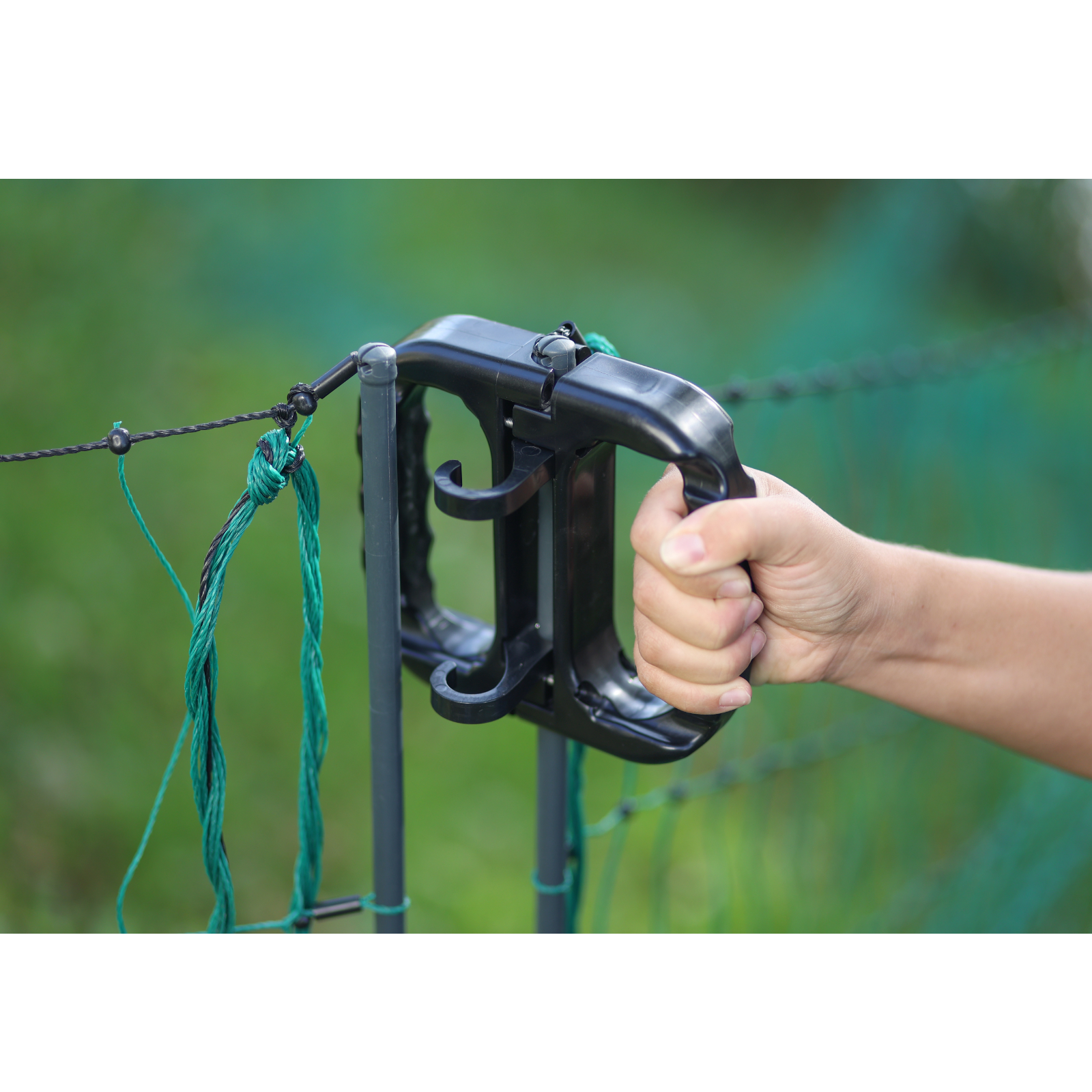 • ist das Netz elektrifiziert, muss der Strom nicht abgestellt werden, um die Weide zu betreten bzw. um zu Ihren Tieren zu gelangen: der extrem robuste und großzügige Griff erlaubt es, durch den Durchgang im Zaun zu gehen ohne die Elektrifizierung vom Netz zu nehmen