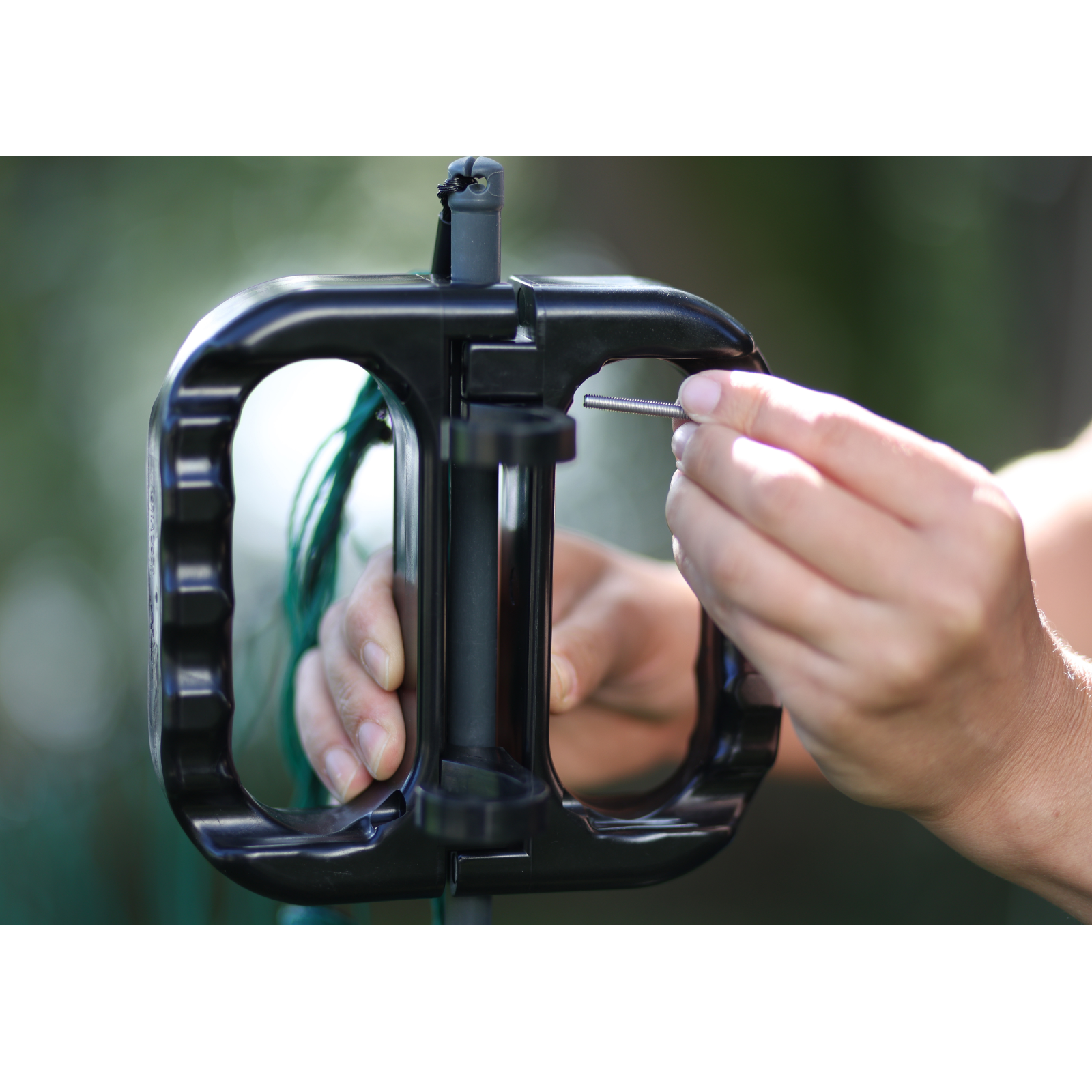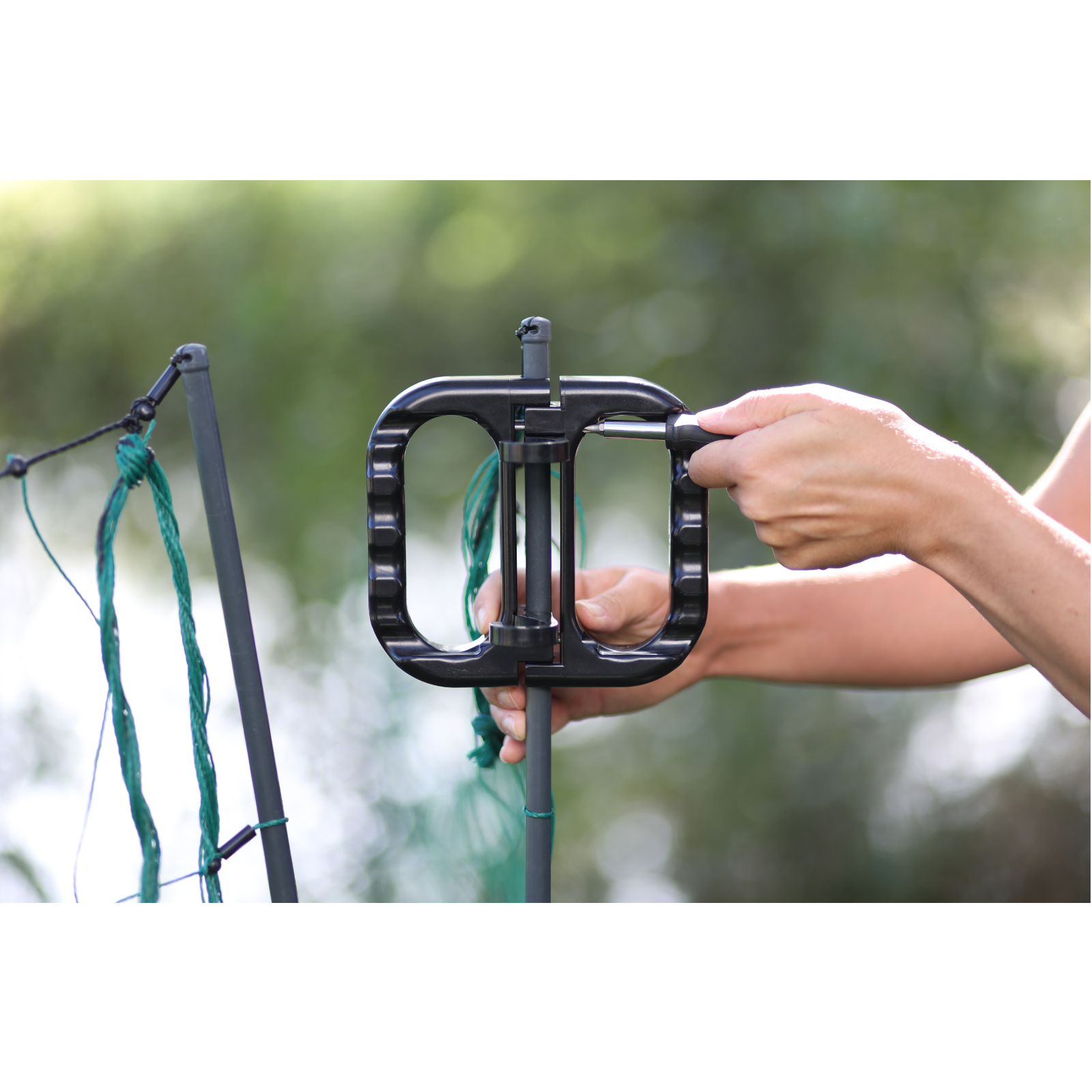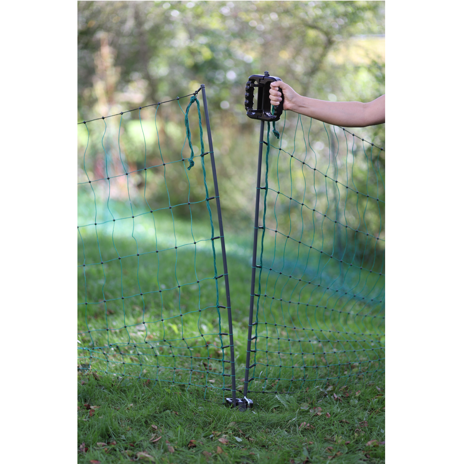 • das Set ist einfach zu handhaben und zu montieren: es passt auf Netzpfähle mit einem Durchmesser von 11 mm bis 19 mm bei allen Typen von Weidenetzen und ist kompatibel mit elektrifizierten und stromlosen Netzen