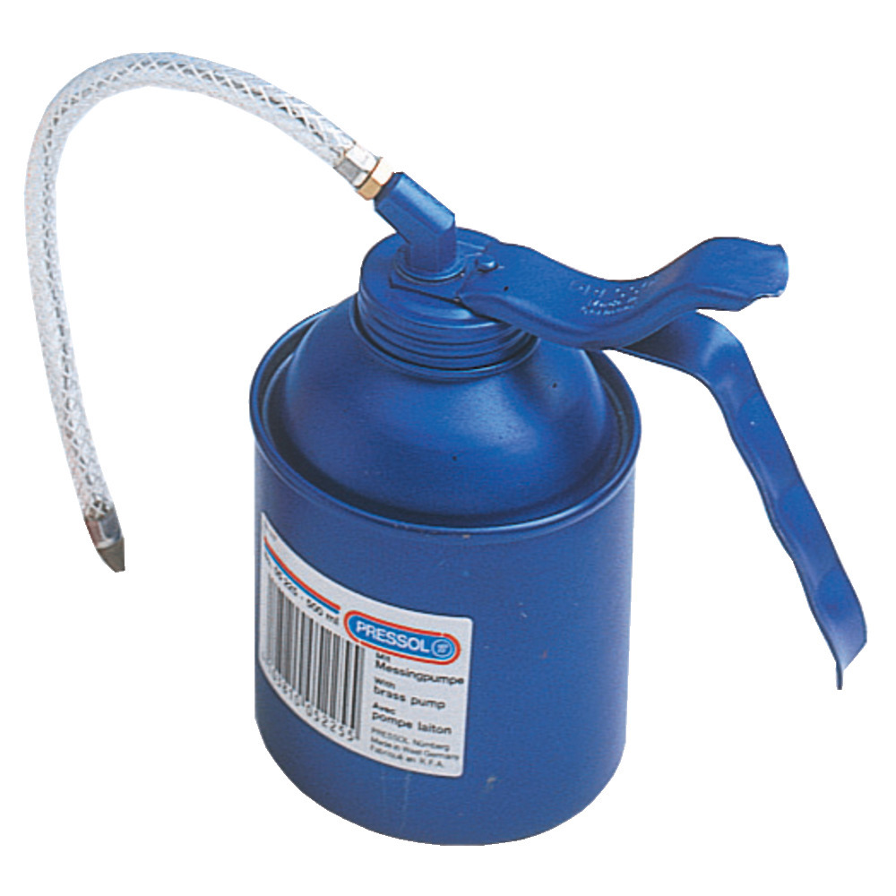 Mit Messingdruckpumpe, Behälter aus Stahlblech. Alle Öler mit 1 beweglichem und 1 starrem Rohr.