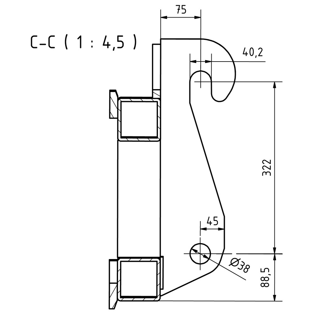 • mit 4 eingeschweißten Buchsen zur Montagemöglichkeit  von 4 Schwerlastzinken mit Gewinde M22