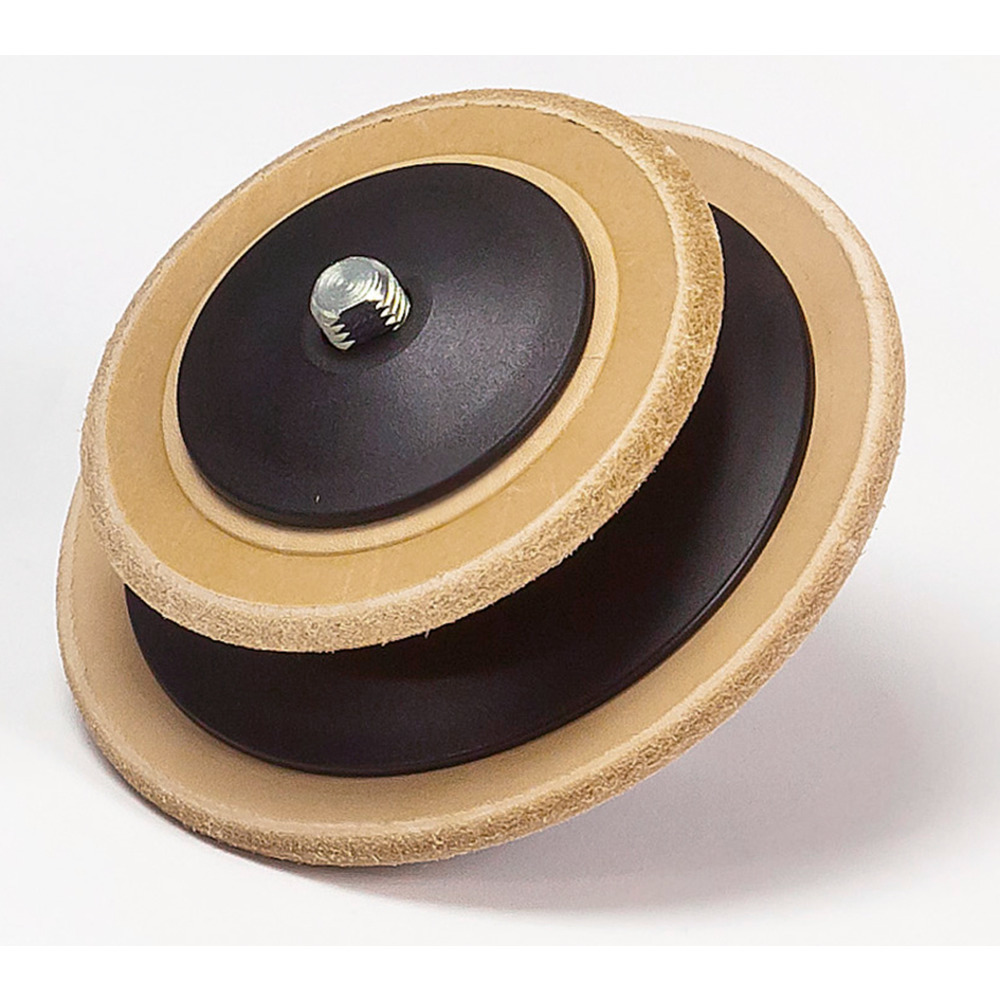 Zum Abziehen und Polieren der Innenseite von Drehröhren, Hohleisen und GeißfüssenDie Abziehscheibe hat zwei auswechselbare Lederprofile, damit Sie eine abgenutzte Scheibe problemlos durch eine neue ersetzen können. Alternative Lederprofile sind als Zubehör erhältlich. Die beiden Standardprofile haben einen Radius von 3 mm und eine Spitze mit einem Winkel von 60°. Als Zubehör gibt es einen Satz mit schmaleren Profilen mit 2 mm Radius und einem Winkel von 45°.