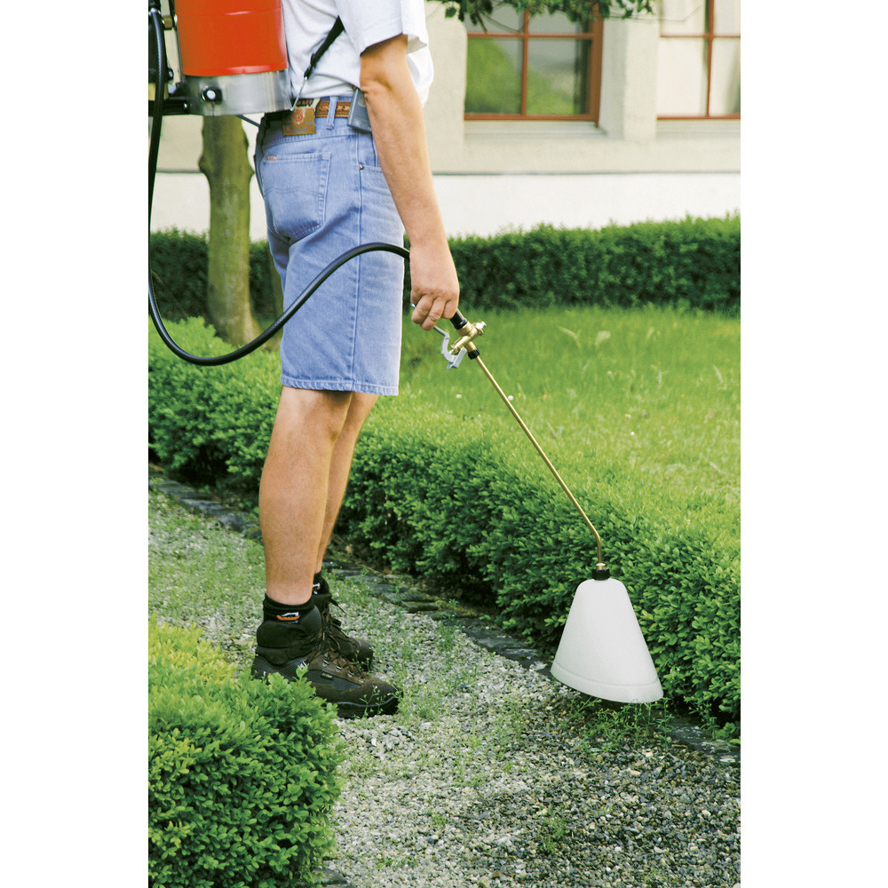Um ungewolltes Abdriften von Herbiziden zu verhindern, werden Sprühschirme für flächenbegrenztes Sprühen verwendet. Die ovale Form ist auf das Sprühbild der integrierten Flachstrahldüse abgestimmt. Für die Geräte Profi Star 5, Flox 10, Iris 15, Senior 20, RPD 15 ATS, REC 15 geeignet.