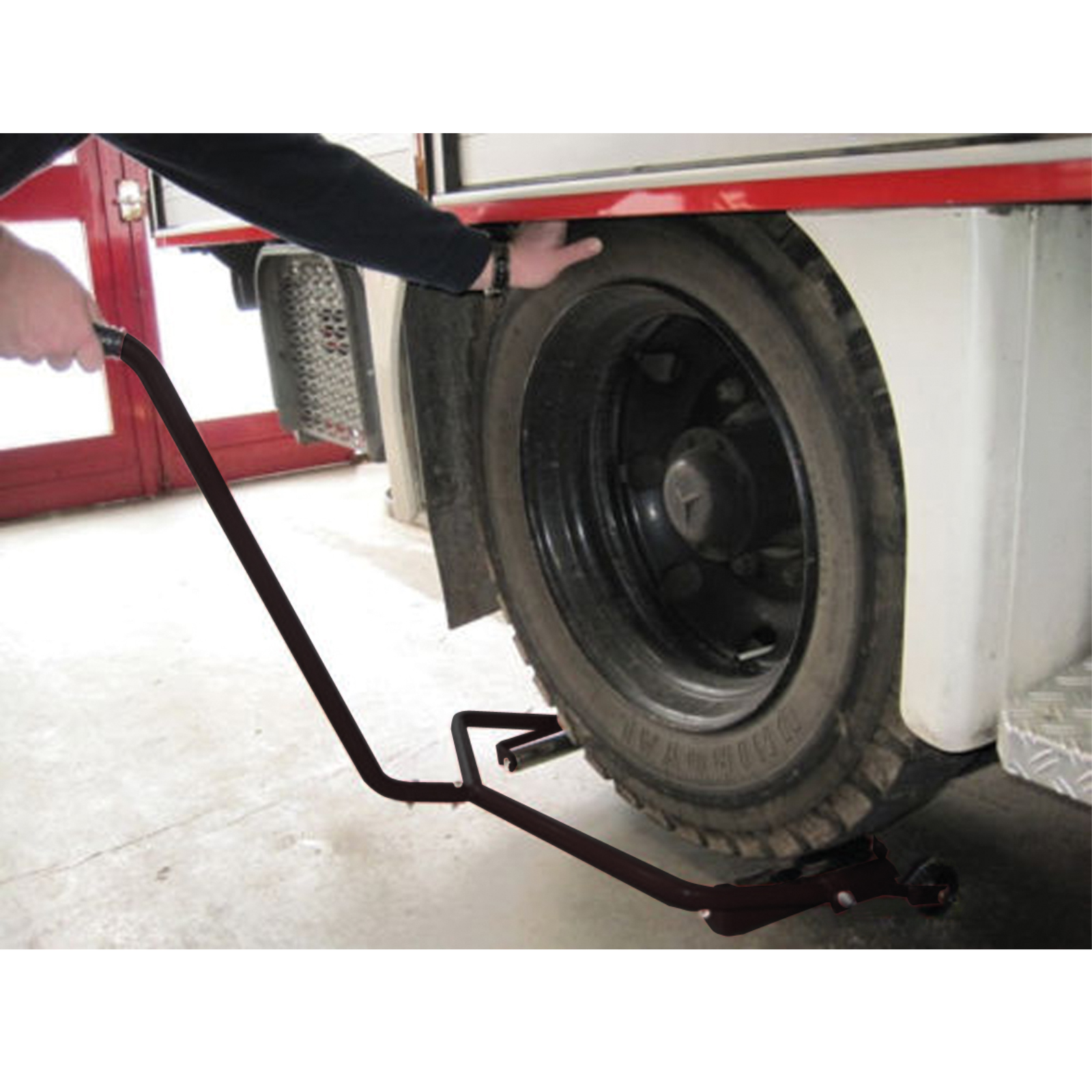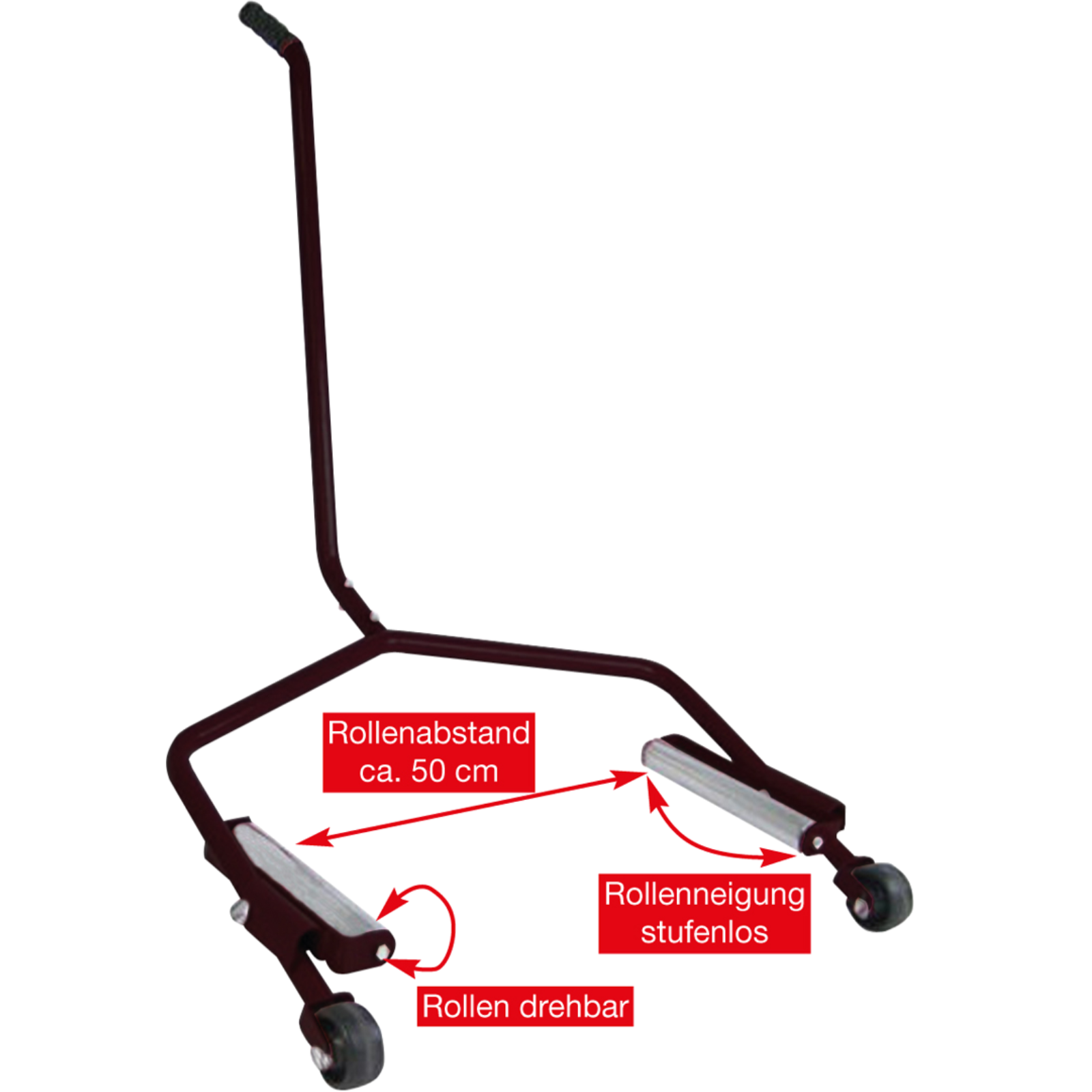 Praktisches Hilfsmittel zur einfachen und sicheren Montage von großen und schwereren Rädern.Das Reifenmontagegerät ermöglicht ein einfaches anheben und drehen des zu montierenden Rades.Erleichtert auch den Reifen Transport zum Fahrzeug.Für Räder bis max. 70 kg. Rollenabstand ca. 50 cm.Anleitung: Demontage:einfach mit der Montagehilfe unter das zu wechselnde Rad schieben, leicht anheben und zurückrollen.Für die Montage in umgekehrter Reihenfolge an die Radbolzen heranschieben.Für die Zentrierung der Radbolzen einfach das Rad auf den beiden Rollen verdrehen und schon kann man die Radbolzen und Löcher leicht zentrieren