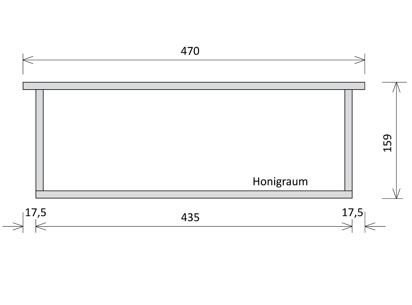 Rähmchen mit geraden Seiten für Dadant Blatt Honigraum mit den Maßen 470x435x159mm.
