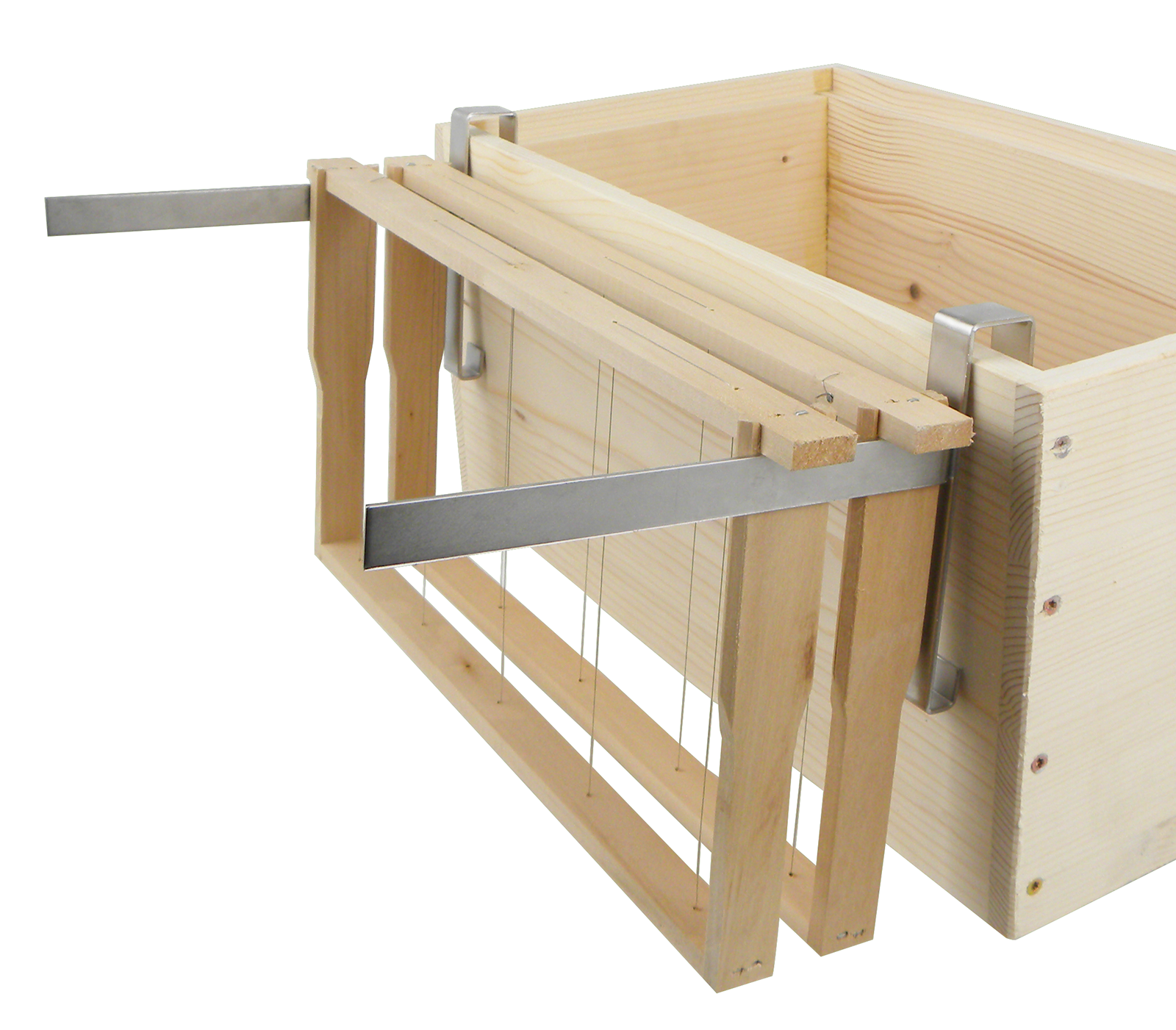 Der zweiteilige Rähmchenhalter aus Edelstahl ist universal einsetzbar für alle Beutengrößen. Verwendbar ist er für Beutenmagazine mit Holzstärke bis 22 mm.