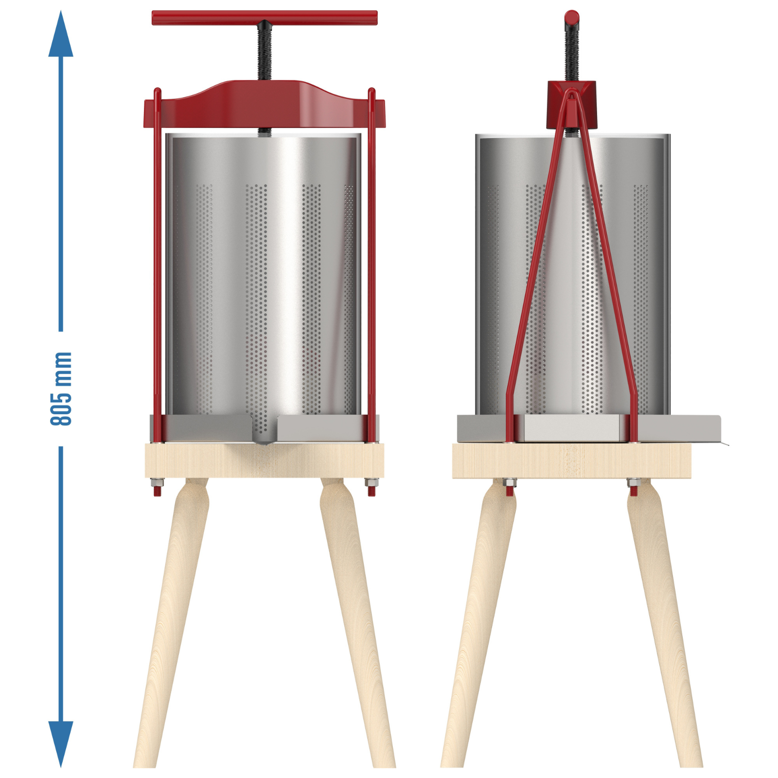 Manuelle Rahmenpresse für hausgemachte Säfte und Weine.Möchten Sie auf einfache und professionelle Weise Saft aus Ihren eigenen Früchten gewinnen? Diese manuelle Rahmenpresse ist die ideale Lösung. Sie lässt sich leicht zusammenbauen, überzeugt durch hohe Qualität und wird Ihnen viele Jahre zuverlässig dienen.Vorteile auf einen Blick:
