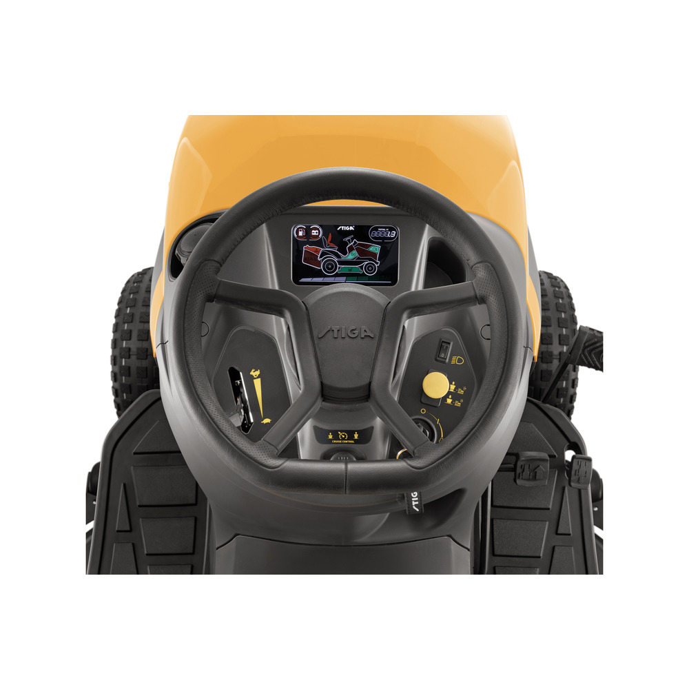 - Der Komfort wird durch den Sitz mit Armlehnen und das Soft-Grip-Lenkrad gewährleistet