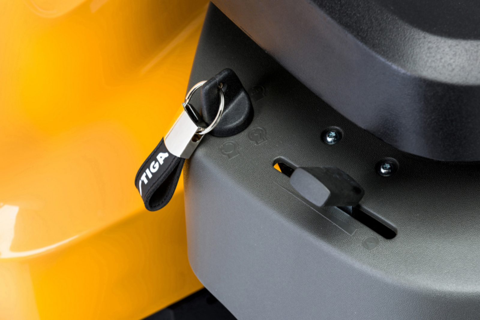Das hydrostatische Getriebe wird per Pedal gesteuert.