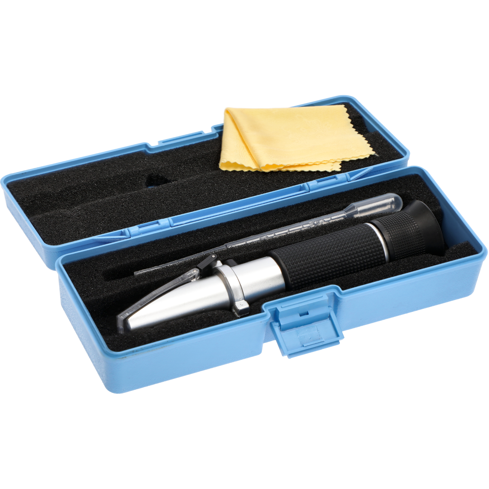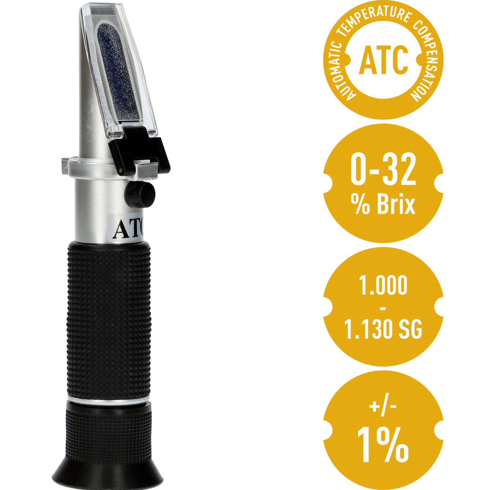 Ein Refraktometer zur Messung der Zuckerkonzentration in der Bierwürze, ausgedrückt in Grad Brix (% Brix), und zur Bestimmung des spezifischen Gewichts von Bierwürze (SG, Specific Gravity).Unersetzlich bei der Herstellung von Bier zuhause - das Refraktometer ist ein präzises optisches Instrument, das sowohl für Anfänger als auch für erfahrene Hersteller von hausgemachten Bieren geeignet ist.Mit diesem Gerät können Sie den prozentualen Anteil von Zucker in Bierwürze überprüfen im Bereich von 0-32 % Brix.Das Refraktometer wird auch zur Messung des spezifischen Gewichts von Bierwürze im Bereich von 1.000-1.130 SG (Specific Gravity) verwendet.Um den Zuckergehalt zu prüfen, genügt ein Tropfen Bierwürze, der direkt auf dem Prisma des Geräts platziert wird.Das Refraktometer ist mit ATC (automatische Temperaturkompensation) ausgestattet und ermöglicht Messungen mit hoher Genauigkeit.Das Refraktometer ist tragbar und leicht und kann schnell und einfach für die erforderlichen Messungen verwendet werden.Lesen Sie vor dem Gebrauch die dem Produkt beizugefügte Bedienungsanleitung und befolgen Sie die Anweisungen zur Einstellung der Schärfe, zur Kalibrierung des Instruments, zur Untersuchung der Probe und zur Reinigung des Prismas und der Platte.Messbereich:Zuckerkonzentration: 0 bis 32 % auf der Brix-Skalaspezifisches Gewicht (1.000 -1.130 SG)Genauigkeit: +/- 0,1 % BrixAutomatische Temperaturkompensation (ATC): 10°C bis 30°C (50°F bis 86°F)Im Set enthalten:- Refraktometer- Pipette- Schraubendreher- Etui- Tuch- Bedienungsanleitung