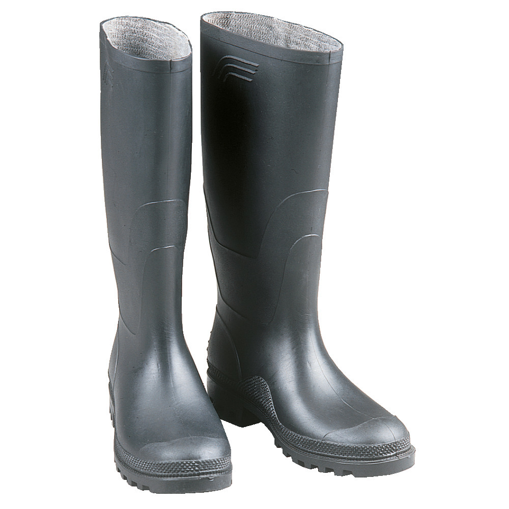 Preiswerter Universalstiefel aus hochwertigen PVC, 100% wasserdicht, hohe Ausführung, mit griffiger Sohle für sicheren Halt. Größe 39-47.
