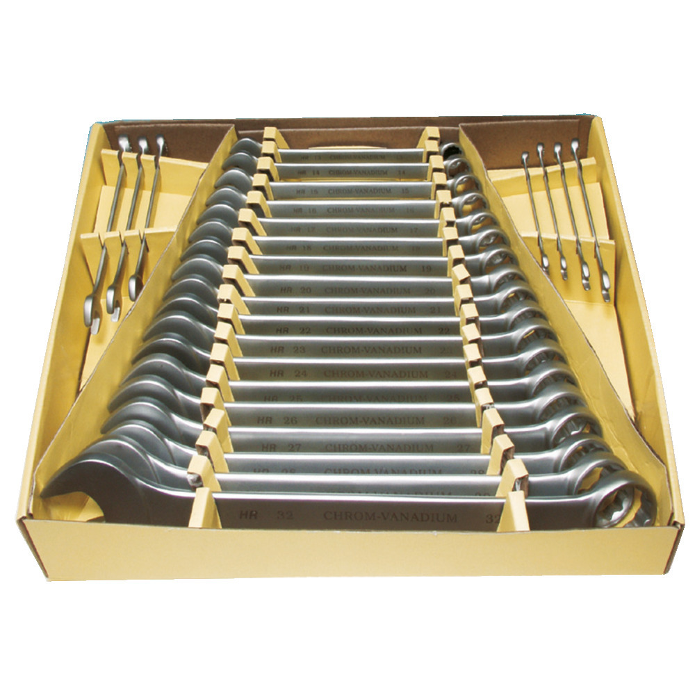 Kompletter Schlüsselsatz von 6 - 32 mm in professioneller Ausführung. Lieferung in Kartonverpackung und inkl. PVC-Rolltasche.