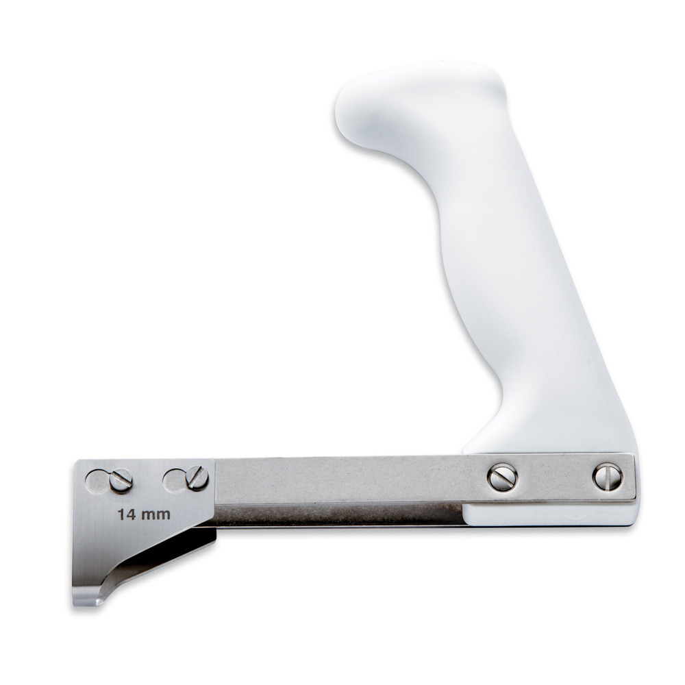 Mit diesem praktischen Hilfsmittel lässt sich beim Schlachten bzw. Wursten problemlos das Fleisch von den Rippen lösen. Klinge 14 mm, Griff aus weißem Kunststoff, Metallteile aus Edelstahl