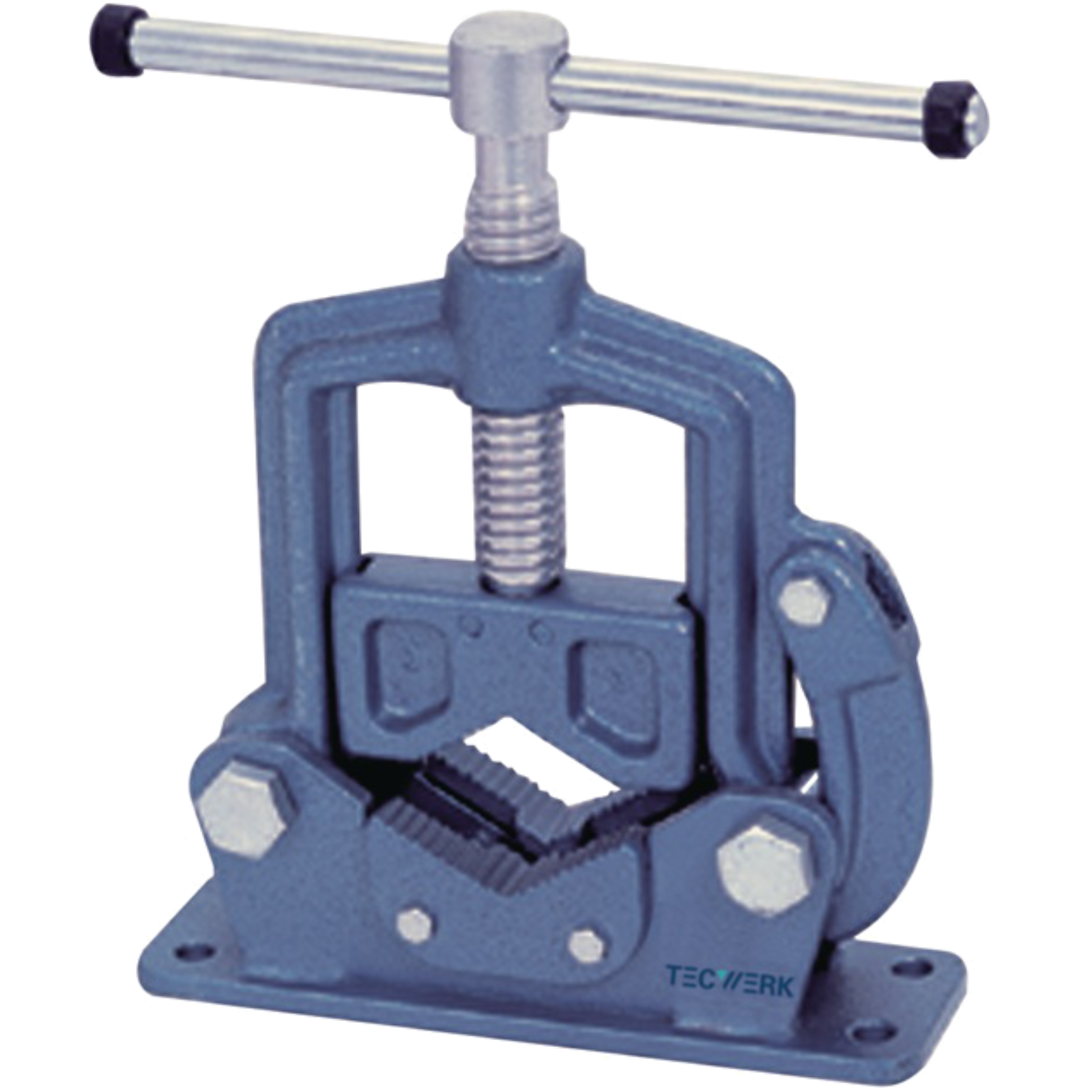 Praktisches Hilfsmittel zur einfachen Bearbeitung von Rohre bis 2 Zoll Durchmesser.Aus hochwertigem Stahl geschmiedet, aufklappbare Ausführung mit selbstschließenden Überwurfhaken für einfaches Arbeiten und sicheren Halt.Maße: 275 x 265 x 90 mm L x B x HEigengewicht: ca. 5 Kg