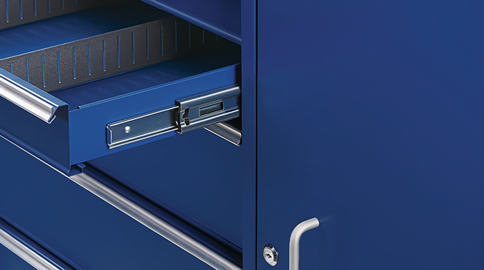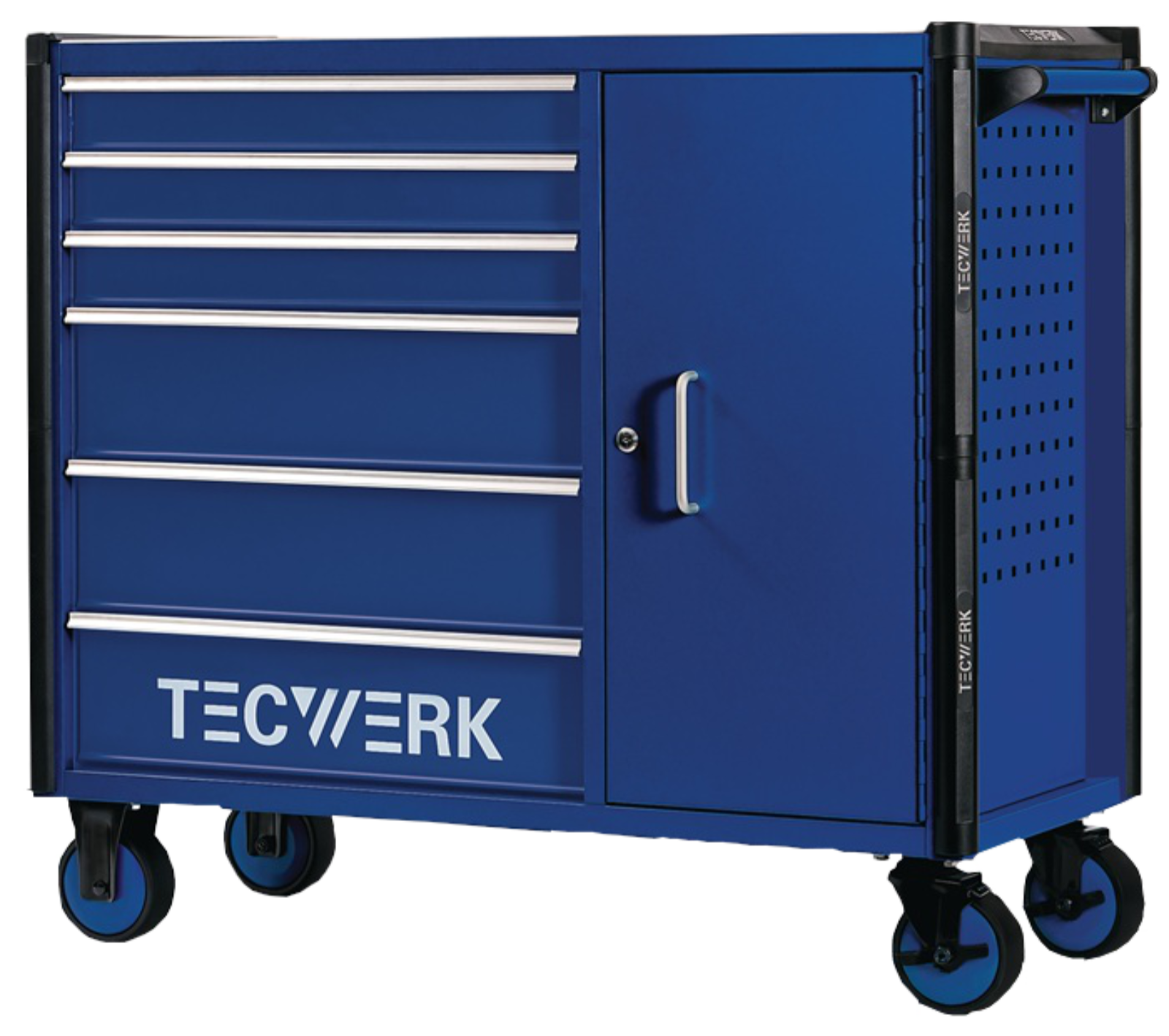 Praktische fahrbare Werkbank mit 6 Schuladen und einer absperrbaren Tür.Schubladen mit100% Auszug und 30 kg Tragkraft per Lade.Lieferumgang mit je einer Antirutschmatte pro Lade und einem Einteiler-Set für 4 Laden.Innenmaße der Laden: 3x 568 x 398 x 75 mm und 568 x 398 x 154 mm B x T x H.Zentralverriegelung für alle Laden.Der Wagen steht auch je 2 starren und 2x lenk-und bremsbaren PP-Rollen 127mm Durchmesser .Tragkraft der Wagen statisch bis 400 kg.Arbeitsfläche/Ablage aus stabilem MDF.Maße über alles: 1105 x 470 x 950 mm B x T x H.