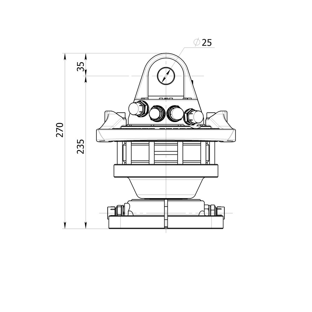 Endloser Drehbereich, für den Einsatz an Rückewagen, Rückezangen, Frontladern oder Ähnlichem. Mit Schutzbügel für die Zuleitungen, ohne Schläuche. mit 4-Loch-Flansch mit 140 x 140 mm Lochmaß, 17 mm Bohrung, max. Axiallast 3,0 Tonnen (statisch),900 Nm Drehmoment bei max. 250 bar, max. 300 bar für Greifer schließen, max. 200 bar für Greifer öffnen, erforderlicher Ölfluß 20 Liter/min., Anschluß 3/8 Zoll, Gewicht 20 kg.