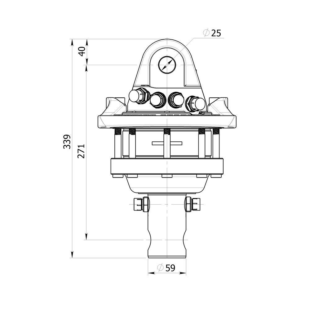 mit 59,0mm Welle und 30 mm Bohrung, max. Axiallast 4,5 Tonnen (statisch), 1050 Nm bei max. 250 bar, max. 300 bar für Greifer schließen, max. 200 bar für Greifer öffnen,