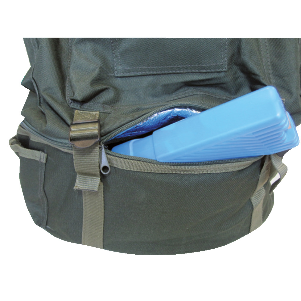 ein toller Angler bzw. Freitzeit-Rucksack zum Super-Sparpreis. 4 aufgesetzte Taschen , starker gepolsteter Tragegurt im unteren Teil befindet sich ein mit Silberfolie ausgelegtes Kühlfach aus 600% power nylon Maße 60x45x20 cm