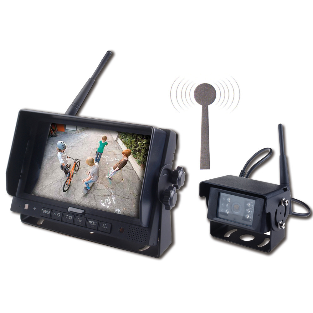 Großer Blickwinkel von 120°, Kabellos per Funk – max. 4 Kameras möglich, hohe Qualität, Leichte Montage, Farbsystem mit 7,0 Zoll Flachbild-Monitor, 1/3“ Sharp CCD Farbkamera, HD-Qualität, Spiegelfunktion der Kamera, Klares Bild auch bei völliger Dunkelheit durch Nachtsichttechnik, HD-Ausführung, Betriebsspannung 10 bis 32 Volt, 24 Monate GarantieEinsatzgebiete: LKW, Landwirtschaftliche Nutzfahrzeuge.Technische Daten:MONITOR: