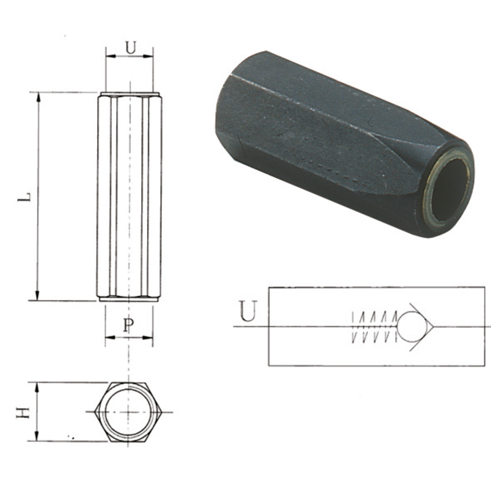 Dient zum Schutz eines Hydraulikbauteiles gegen Druckspitzen durch Belastungseinwirkung von außen. Öffnungsdruck 0,5 bar