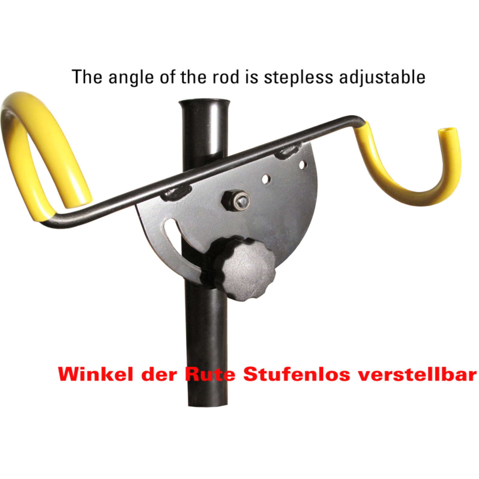 Rutenhalter X-Heavy mit integriertem SchirmständerDieser sehr stabile, aus dickem Metall gefertigte Rutenhalter mit integriertem Schirmhalter (Schirmständer) ist im Winkel der Angelrute stufenlos verstellbar.Zusätzlich hat er einen zweiten Fuß, welcher für einen stabilen Halt der Rute und des Schirms sorgt, sowie das Verdrehen der Rute (auch beim Angeln mit Strömung im Fluss) verhindert.Auch ideal geeignet als Rutenhalter beim Angeln mit einer längeren Stellfischrute.
