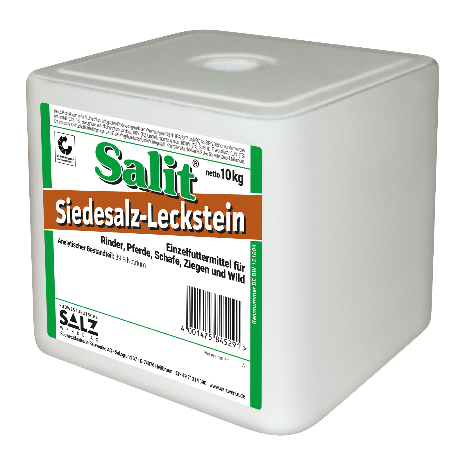 Siedesalz Leckstein, 10 kg, ideal geeignet für Rinder, Pferde, Schafe, Ziegen und Wild. Er ist frei von Kupfer, in der ökologischen Produktion gemäß EG-Verordnung zu verwenden und InfoXgen gelistet. Aus 100% Natriumchlorid (Siedesalz), 39% Natrium.
