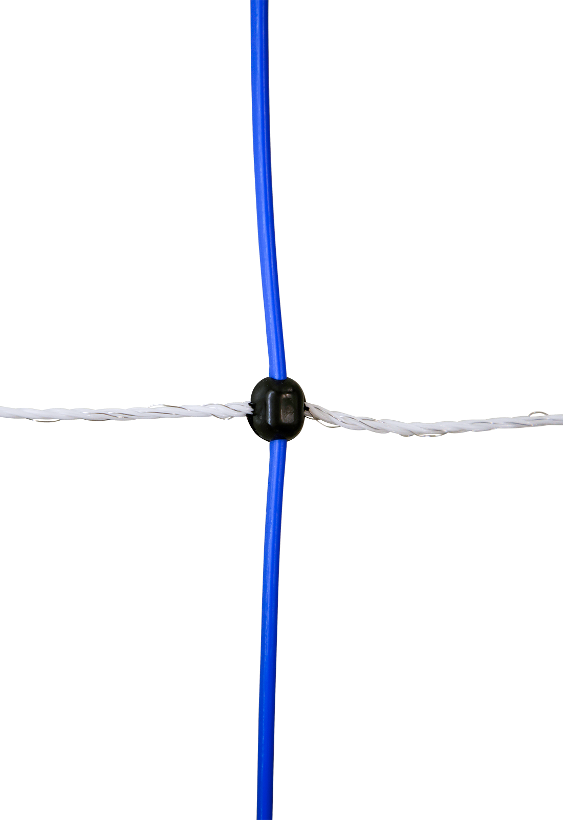 145 cm extra hohes Wolfsabwehrnetz für Schafe und Ziegen.Mit vertikalen Kunststoffstreben für optimalen Stand auch in unebenem Gelände. Mit optional anschließbarer, verstärkter Bodenlitze zur Erdung über die gesamte Netzlänge bei schwierigen Bodenverhältnissen (z.B. sehr sandigeoder trockene Böden).Mit 9 x TriCond Reihen à 3 x 0,30 mm.15 integrierte weiße Kunststoffpfähle Ø 19 mit verzinkter Bodenspitze (Doppelspitze).