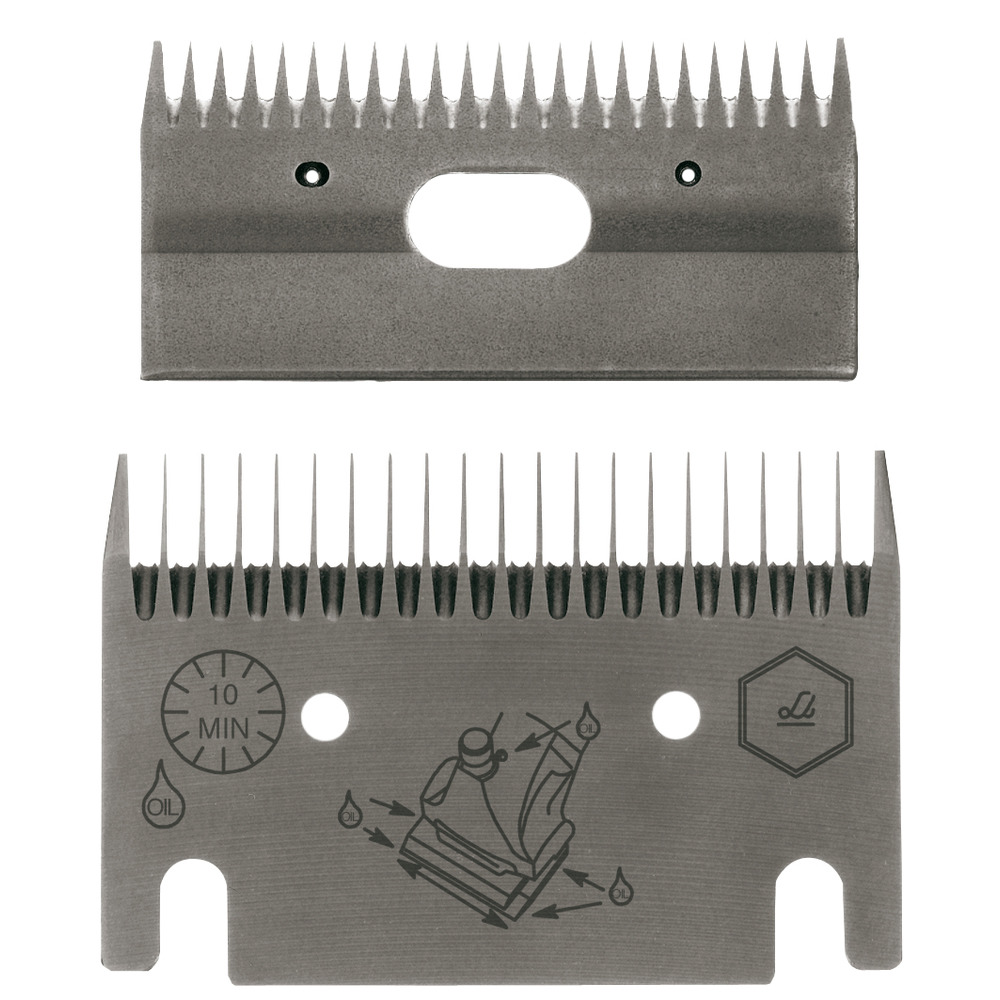 Messersatz für Scherkopf VIII, für die Rinder- oder auch Pferdeschur sauberer oder leicht verschmutzter Tiere. Für ein sauberes und streifenfreies Schnittbild. Zähne: 23/21 (Ober-/Untermesser). Schnitthöhe: ca. 3 mm, Schnittbreite: ca. 75 mm.