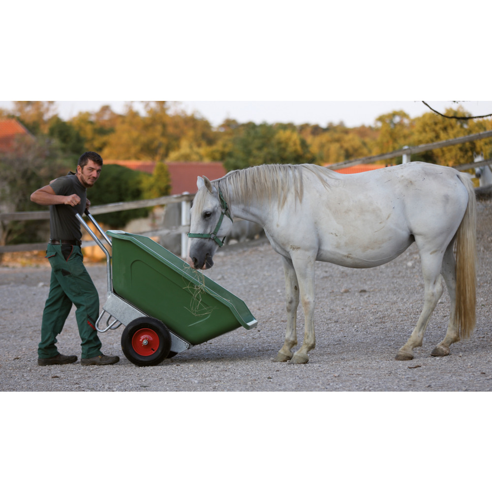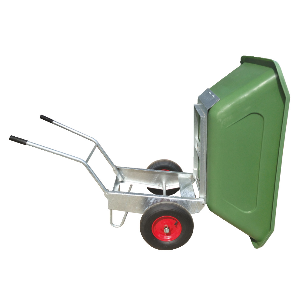 Robuste Schubkarre mit verzinktem Rahmen und 2-Rad-Fahrwerk.