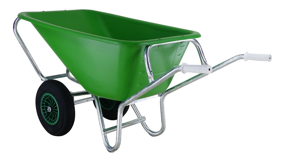 Die Farmer Sally ist die perfekte Schubkarre für alle, die viel transportieren und dabei Wert auf Stabilität legen. Mit einem Volumen von 160 Litern bietet sie jede Menge Platz für Mist, Futter, Laub, Kompost oder Bauschutt. Die breite Kunststoffmulde der Garette ist witterungsbeständig, stoßfest und leicht zu reinigen – ideal für den täglichen Einsatz auf Hof, im Garten oder im Stall. Dank der zwei luftbereiften Räder steht die Schubkarre besonders sicher und lässt sich auch bei voller Beladung kraftsparend bewegen. Kein Kippen, kein Wackeln – auch auf unebenem Gelände. Der stabile Rahmen aus pulverbeschichtetem Stahl sorgt für lange Lebensdauer und hohe Belastbarkeit. Mulde aus Polyäthylen, verstärkter und feuerverzinkter Rahmen mit Verschleißschutzkufen, Querverstrebungen, Kippbügel, Wannenstützbügel vorne und hinten. Luftrad 16 x 4″