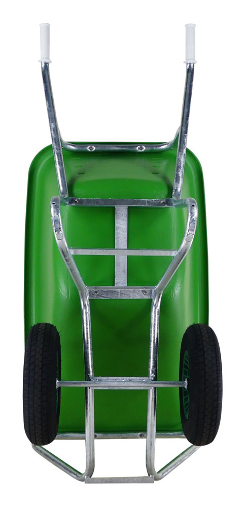 - Zwei luftbereifte Räder für hohe Kippstabilität