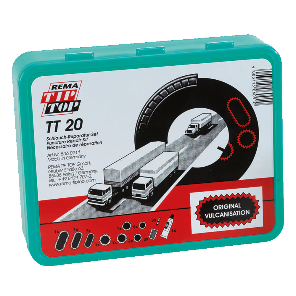 26-teilig, mit 17 Flicken,1 Tube SVS-Lösung 25 g, 3 Raubleche, 3 Ventileinsätze kurz, für Land-/Baumaschinen.